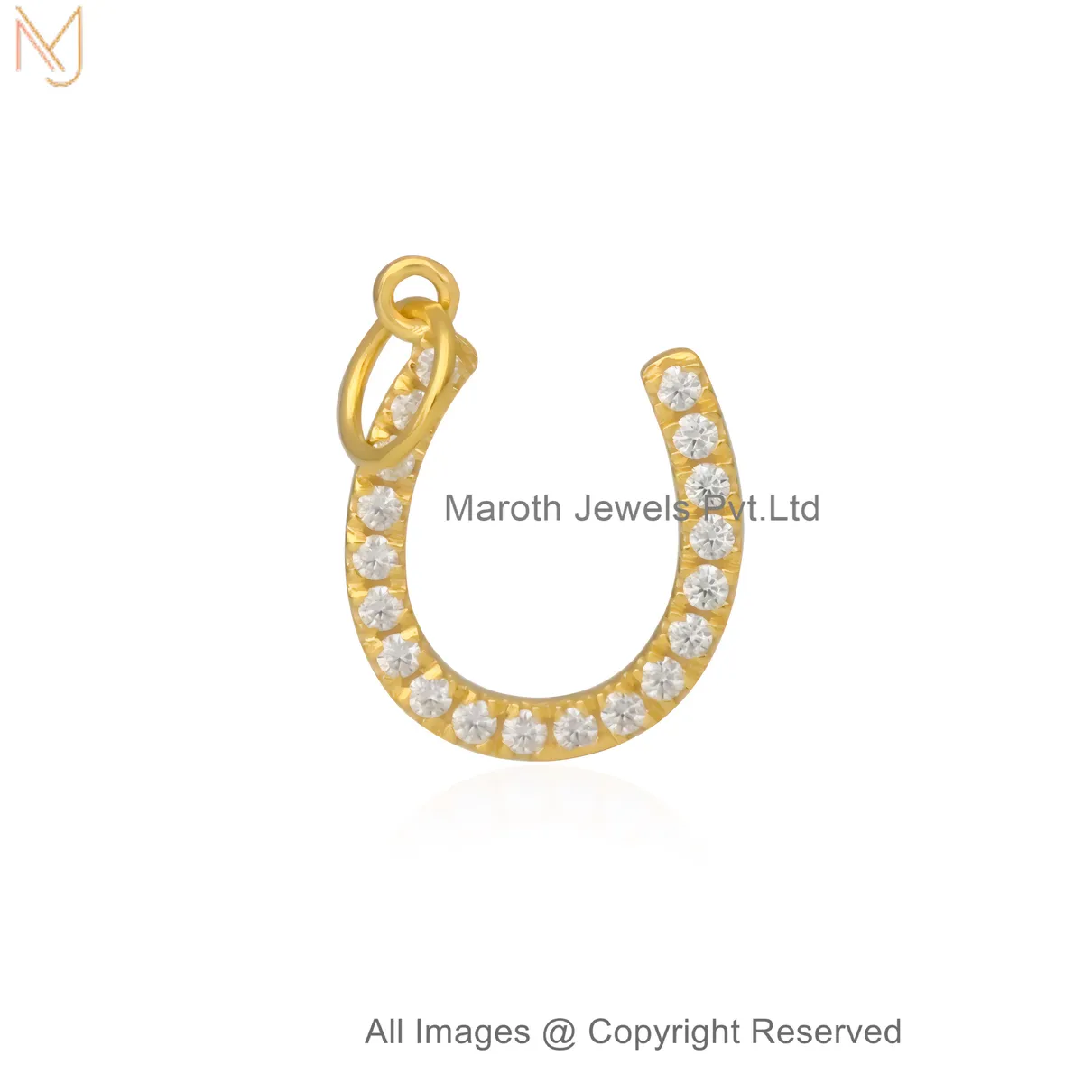925 Silver Yellow Gold-Plated Moissanite Horseshoe Charm Pendant Custom Jewelry