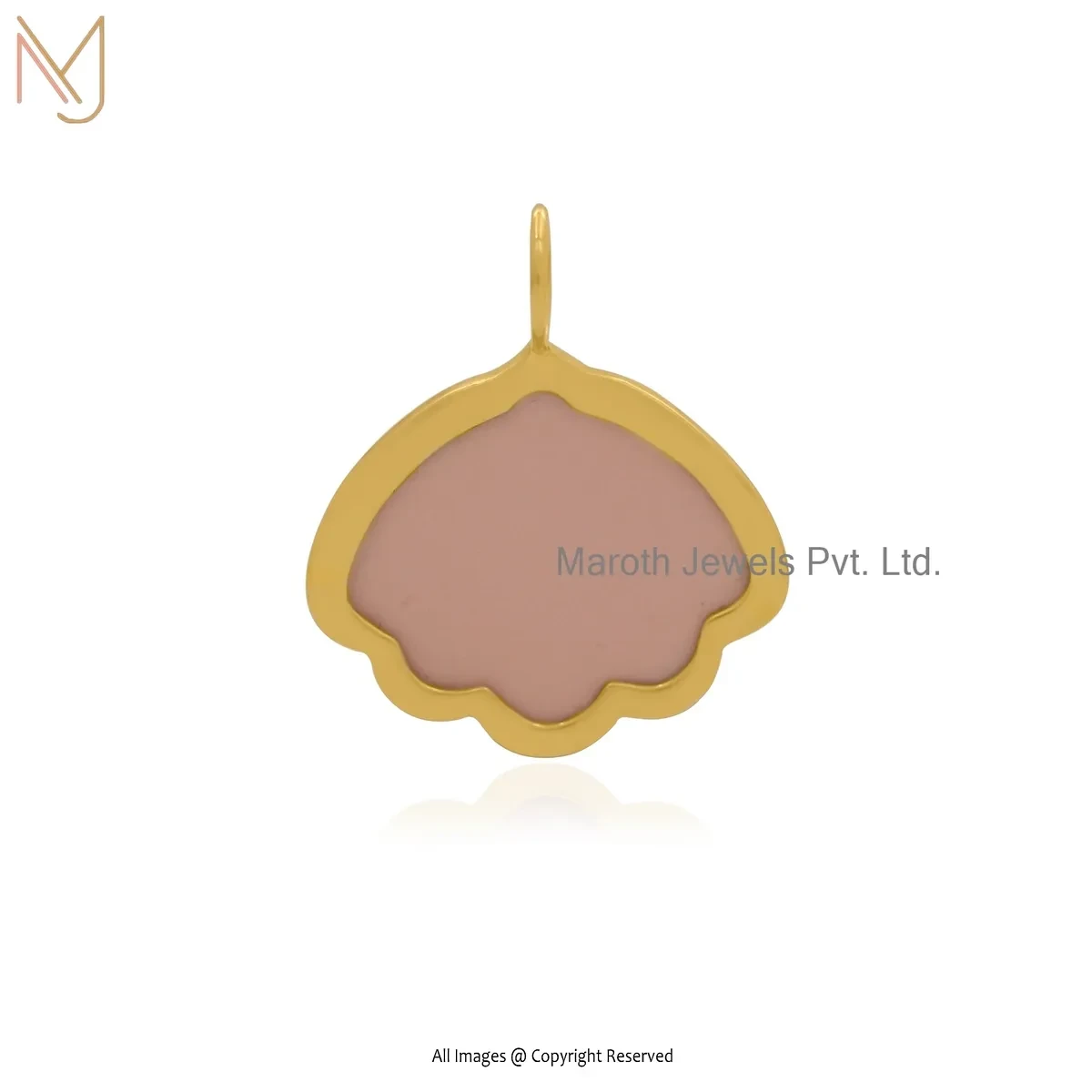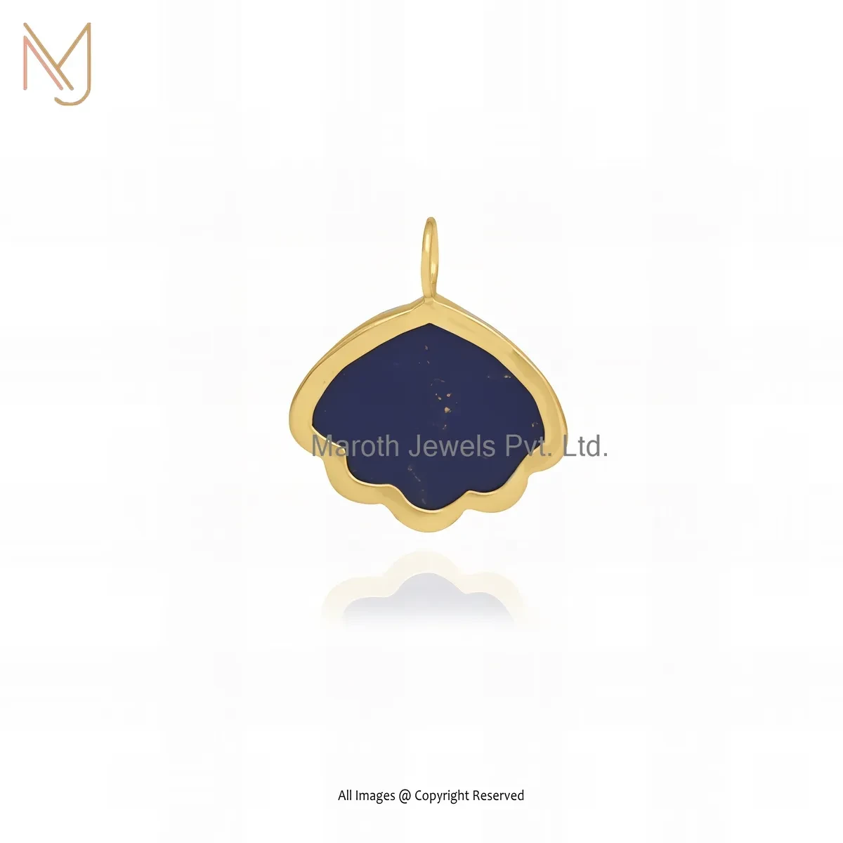 925 Silver Yellow Gold Plated Moissanite & Lapiz Lazuli Gemstone Shell Pendant Jewelry Supplier