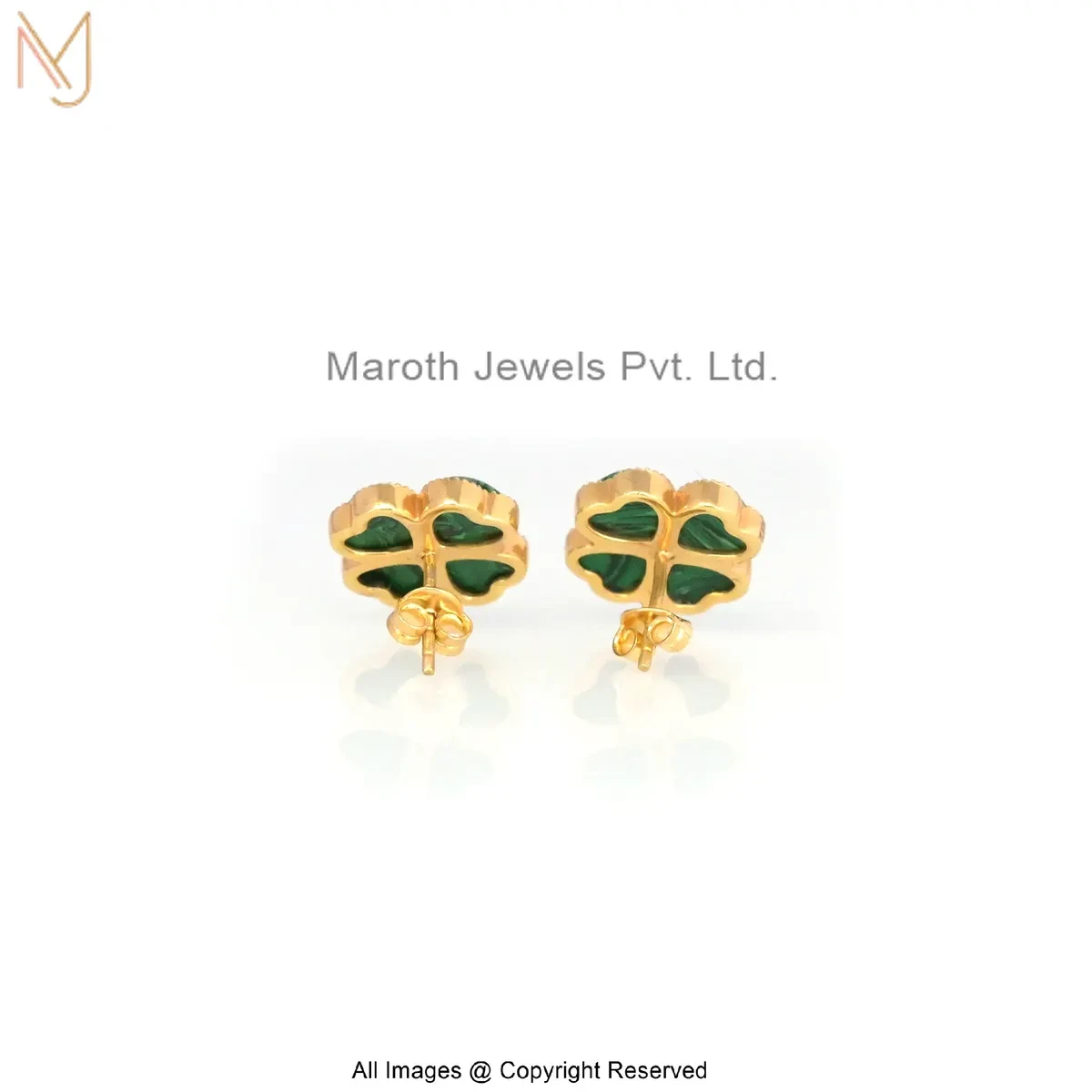 925 Silver Yellow Gold Plated Moissanite Malachite Four Clover Leaf Stud Earring Manufacturer