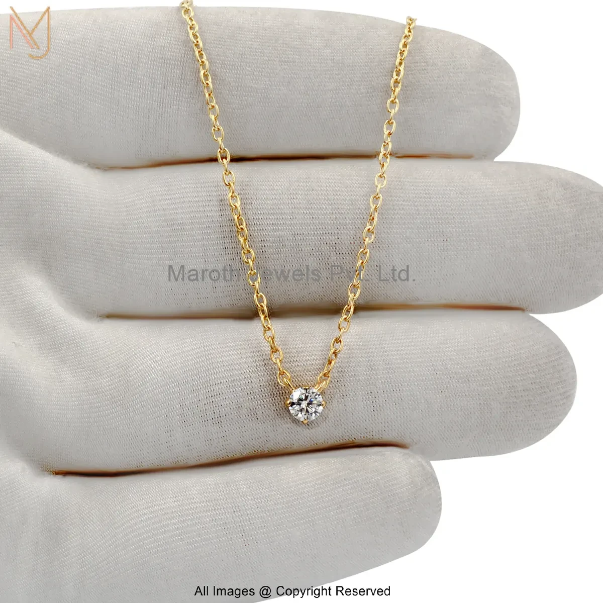 925 Silver Yellow Gold Plated Moissanite Round Bezel-Set Solitaire Pendant Necklace Jewelry Supplier