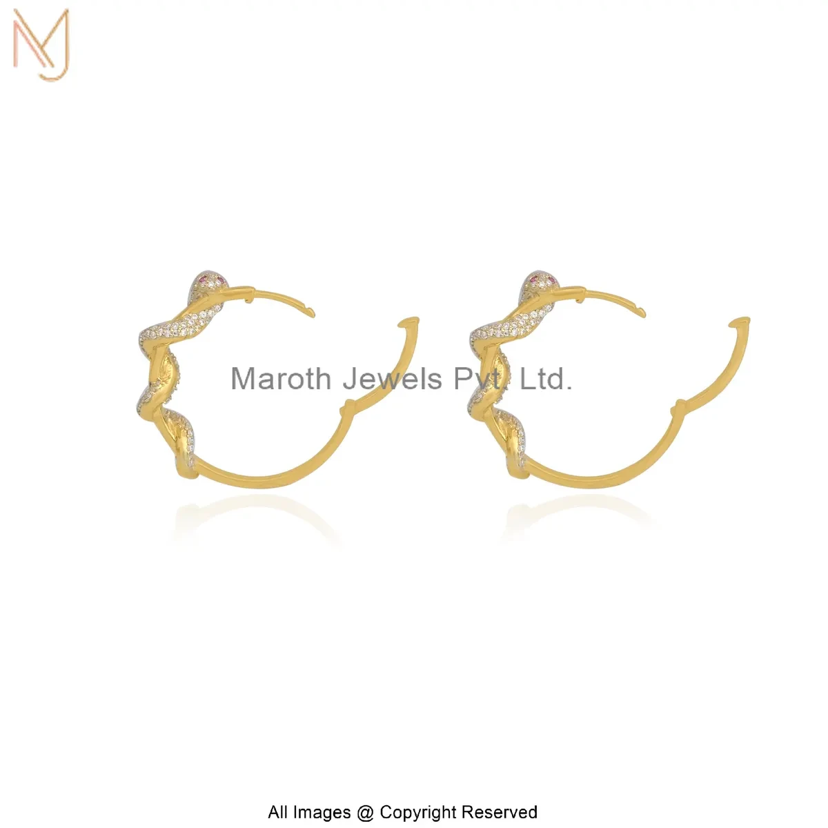 925 Silver Yellow Gold Plated Moissanite Ruby Snake Huggies Earring Custom Jewelry