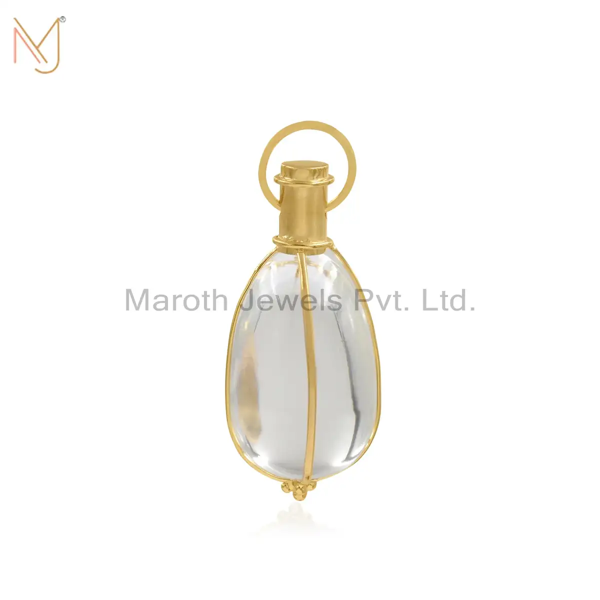 925 Silver Yellow Gold Plated Moonstone And Ruby Pendant Jewelry Supplier