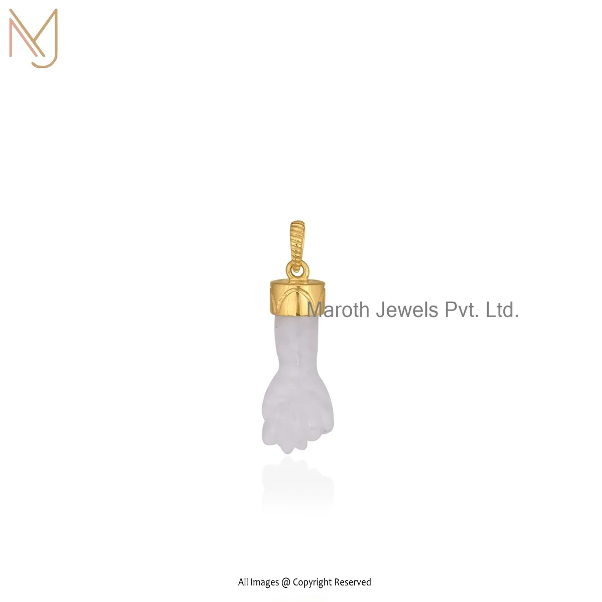 925 Silver Yellow Gold Plated Moonstone And Turqouise Figa Pendant Custom Jewelry