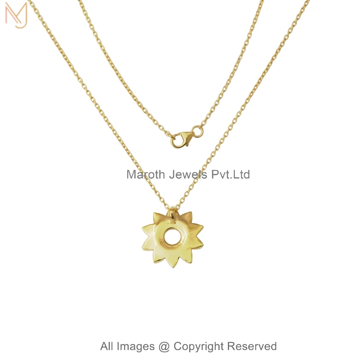 925 Silver Yellow Gold Plated Moonstone Golden Bloom Pendant Necklace Jewelry Manufacturer