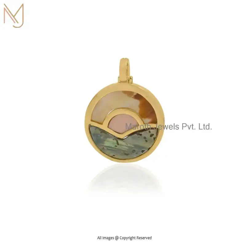 925 Silver Yellow Gold Plated Mother OF Pearl Pink Opal Cubic Zircon Round Gemstone Pendant Jewelry Supplier