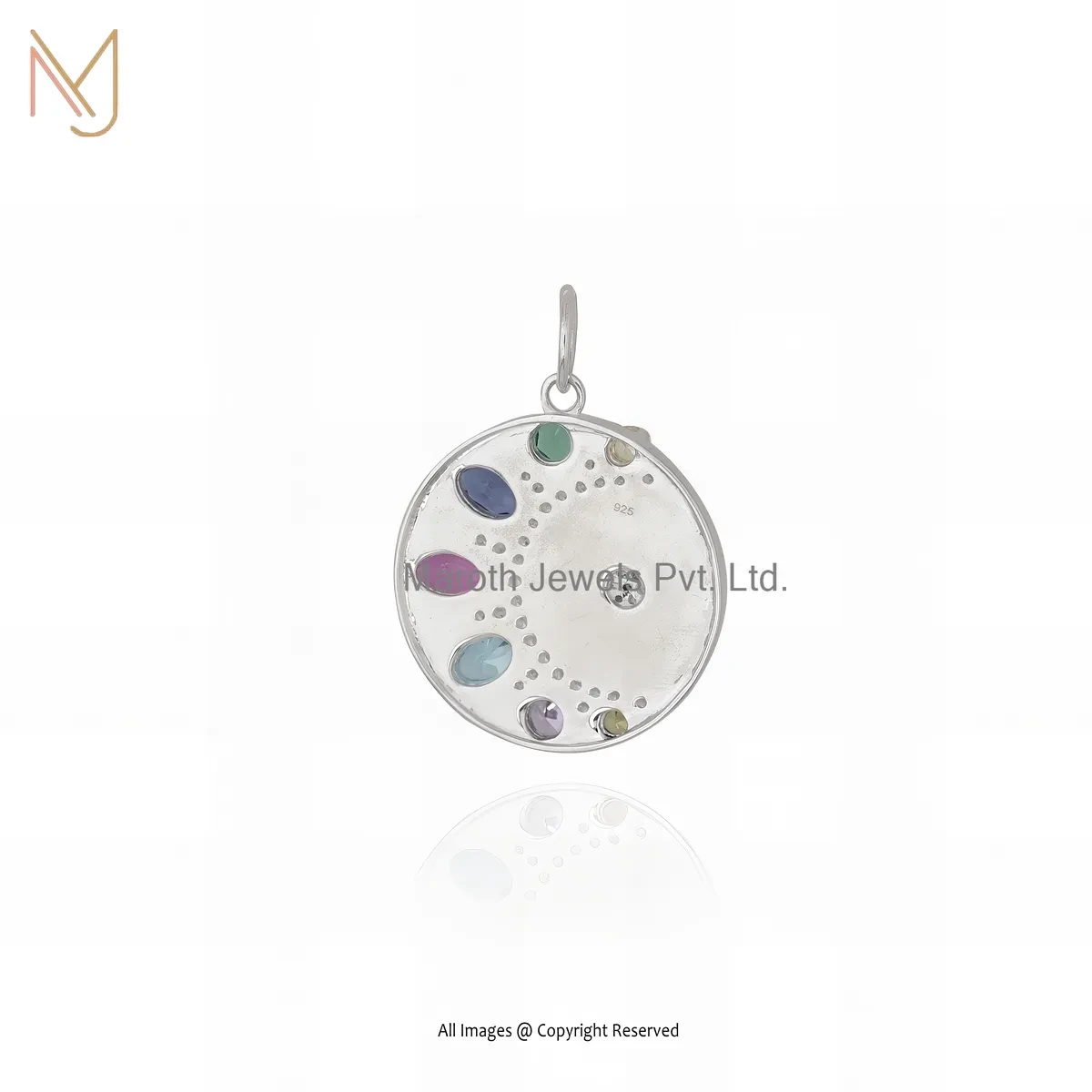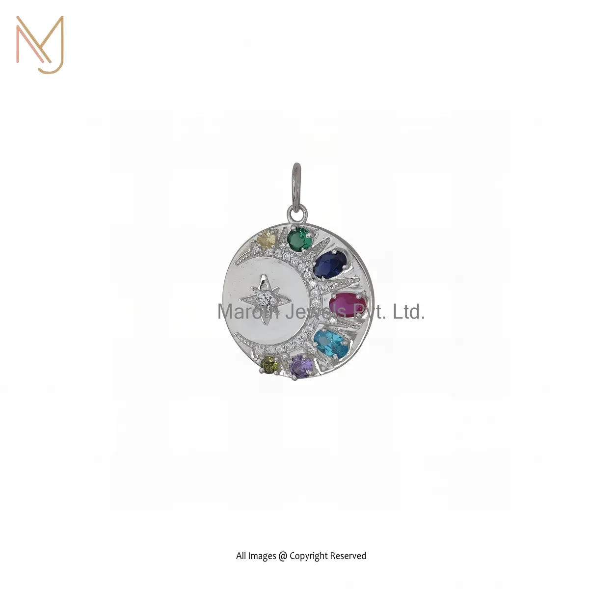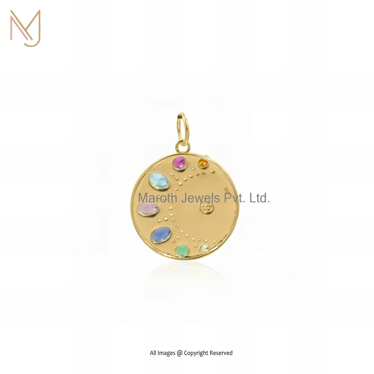 925 Silver Yellow Gold Plated Multi Cubic Zircon Disc Pendant Manufacturer