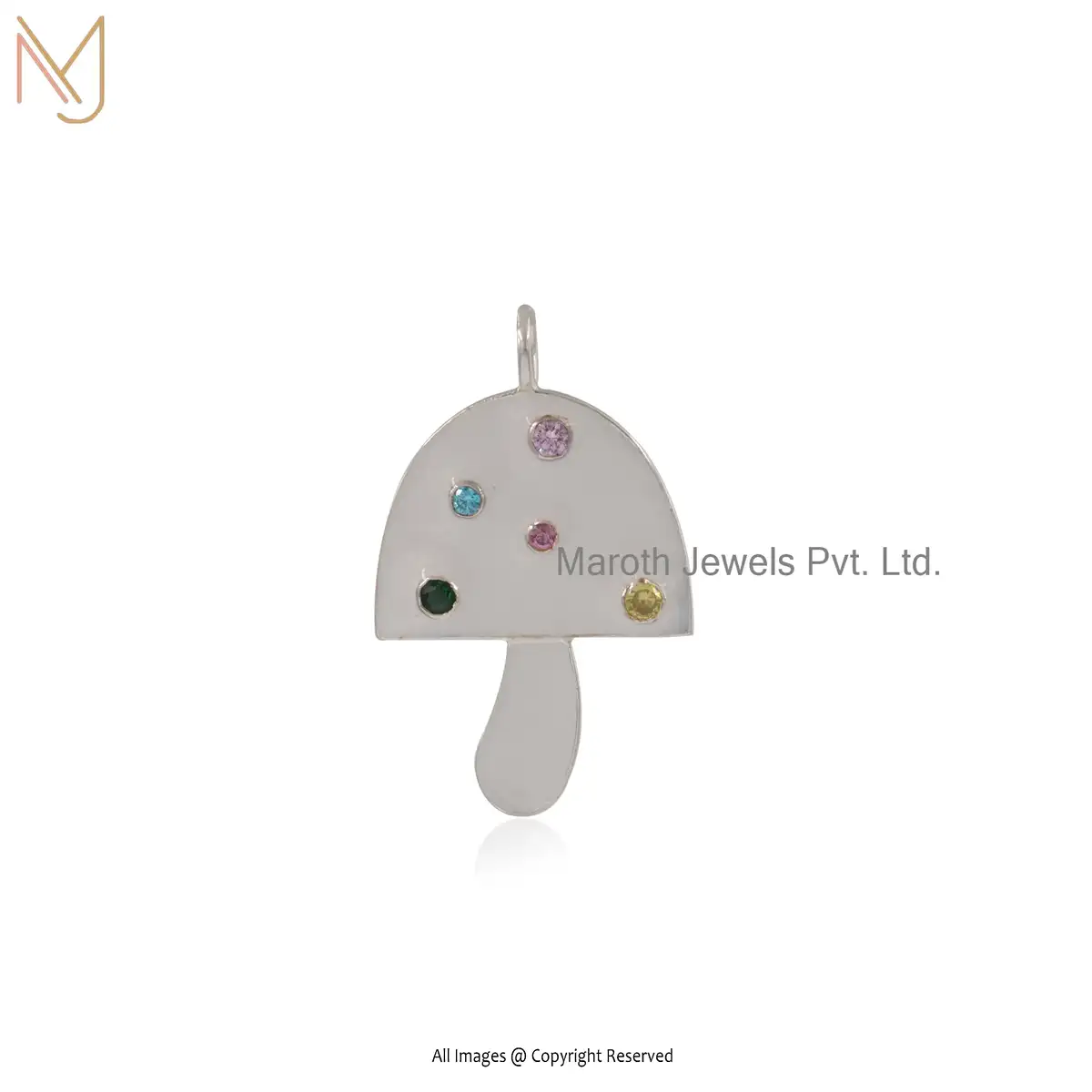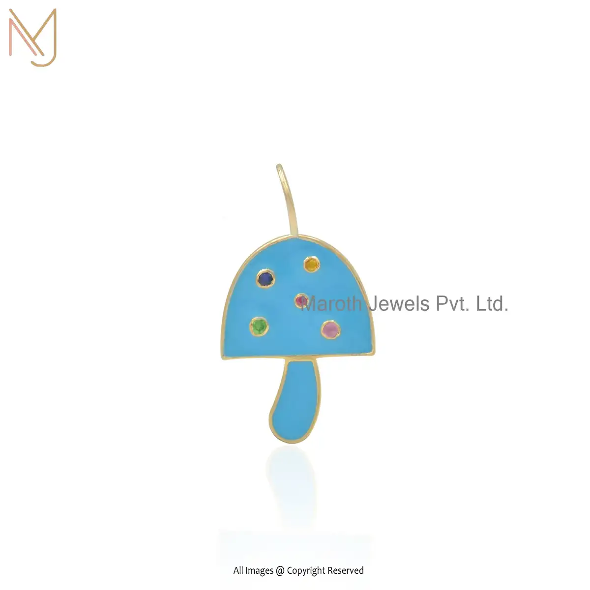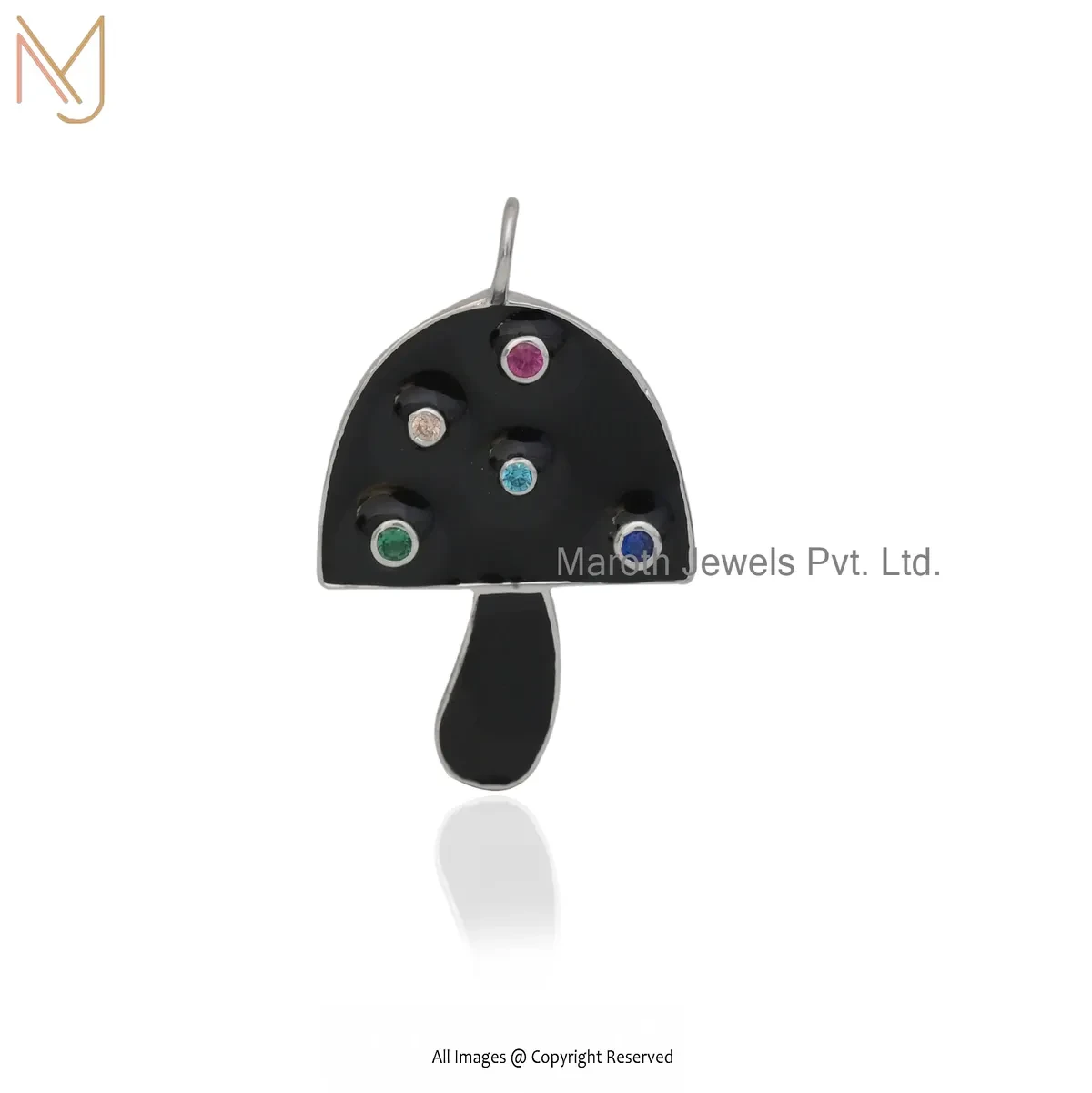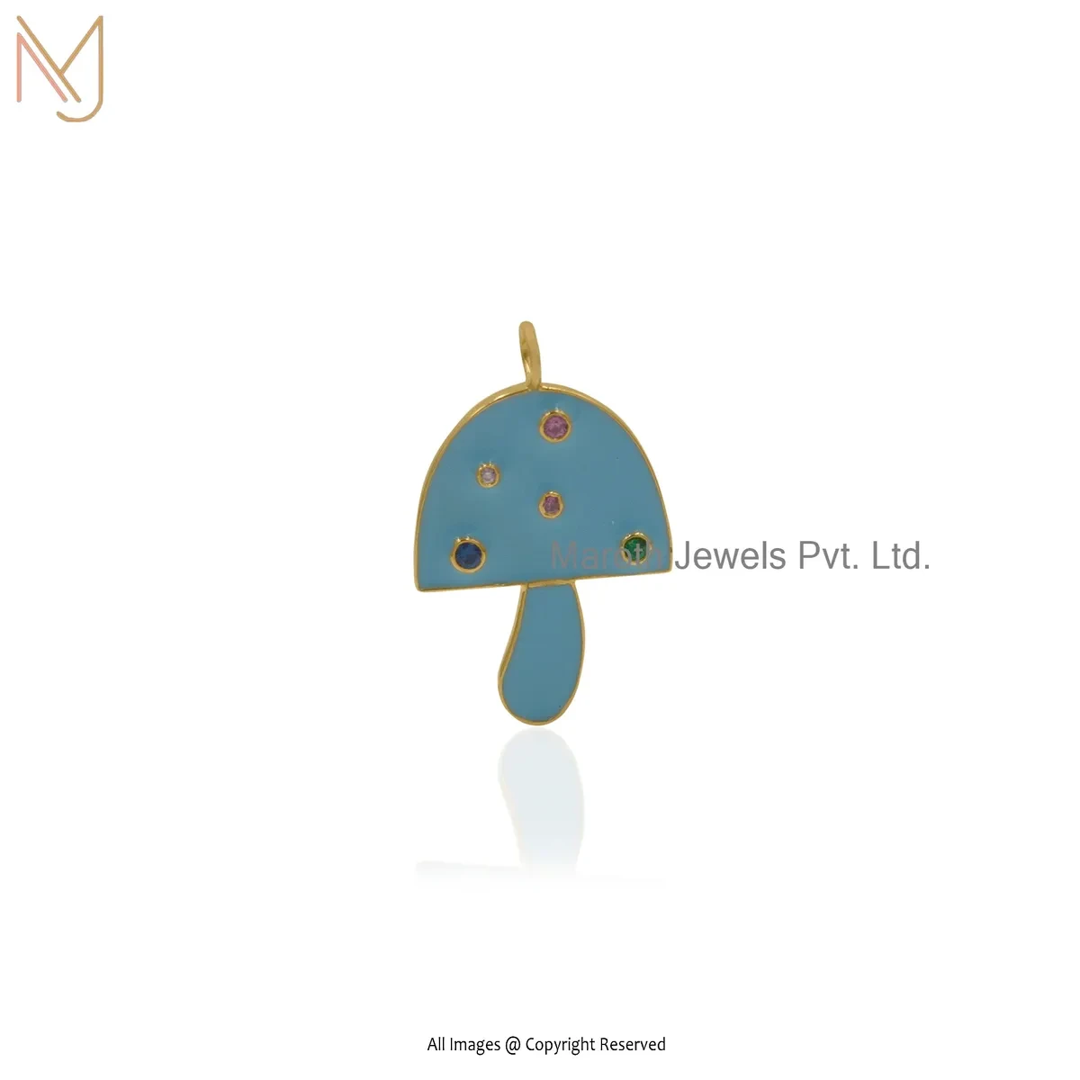 925 Silver Yellow Gold Plated Multi Gemstone & Enamel Mushroom Pendant Manufacturer