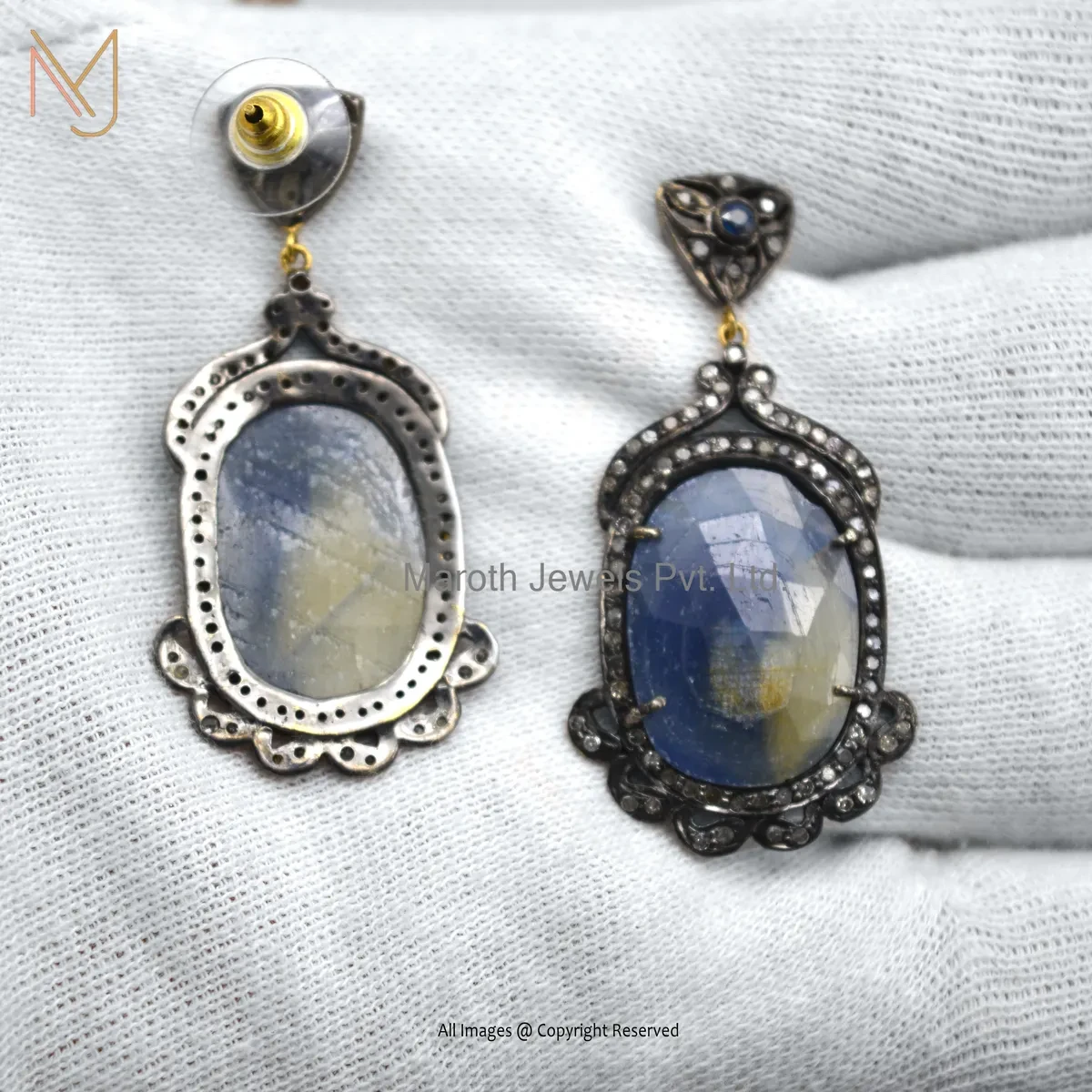 925 Silver Yellow Gold Plated Pave Diamond And Blue Sapphire Drop Earring Jewelry Supplier