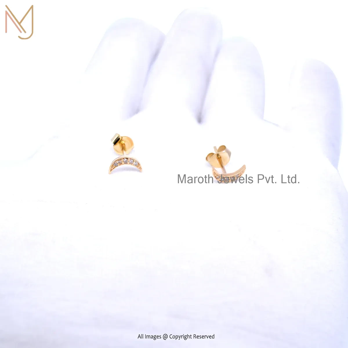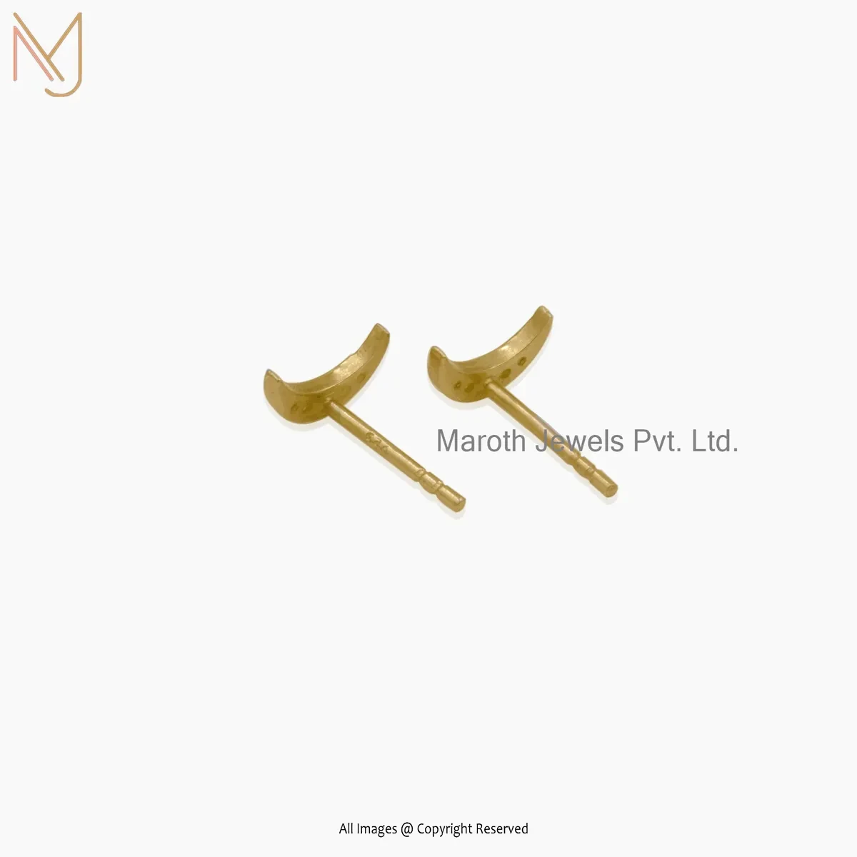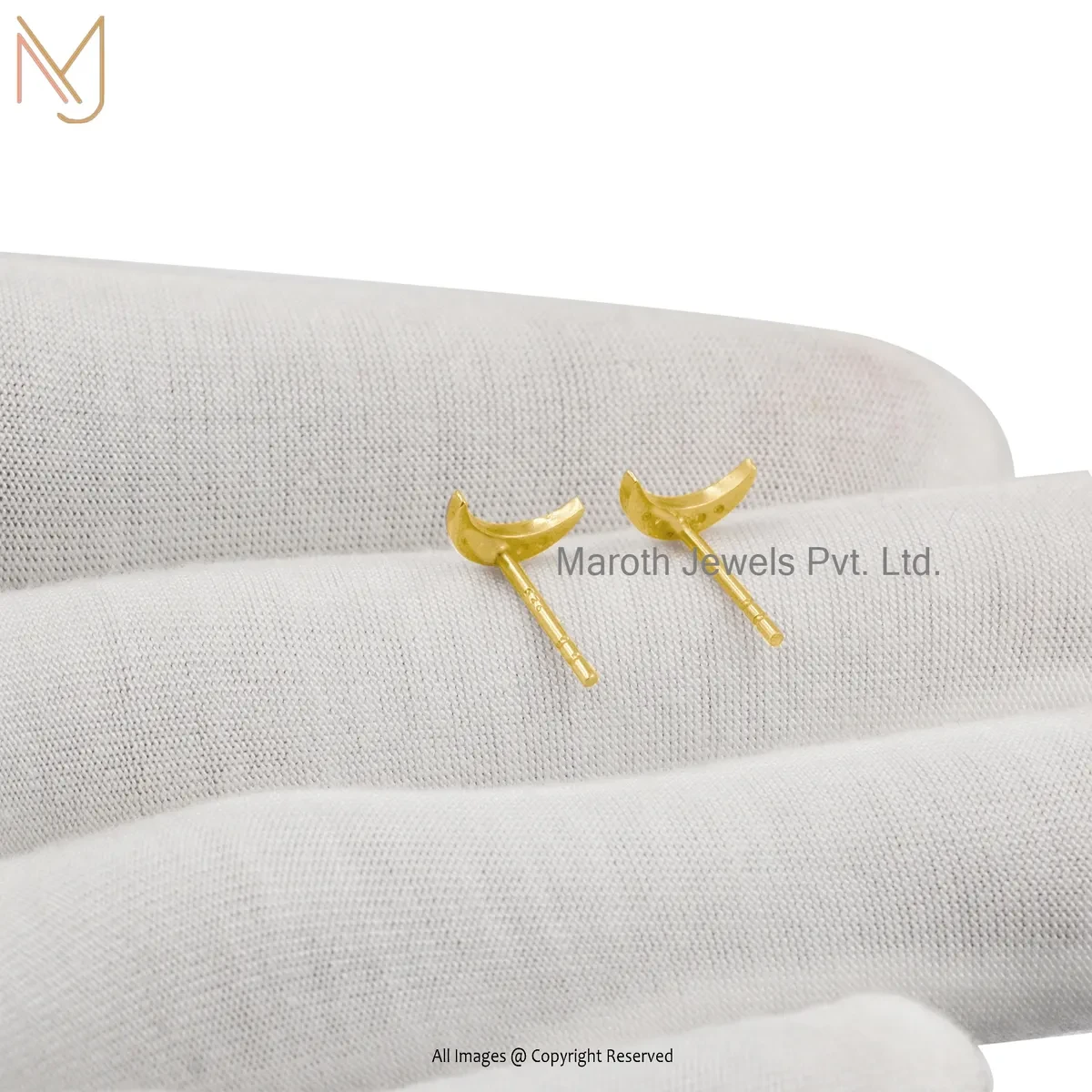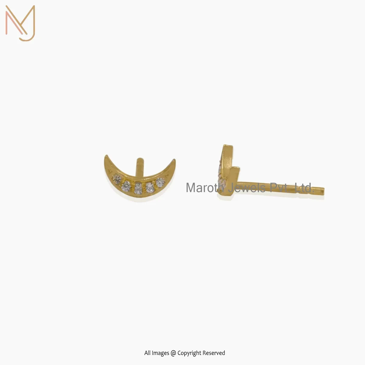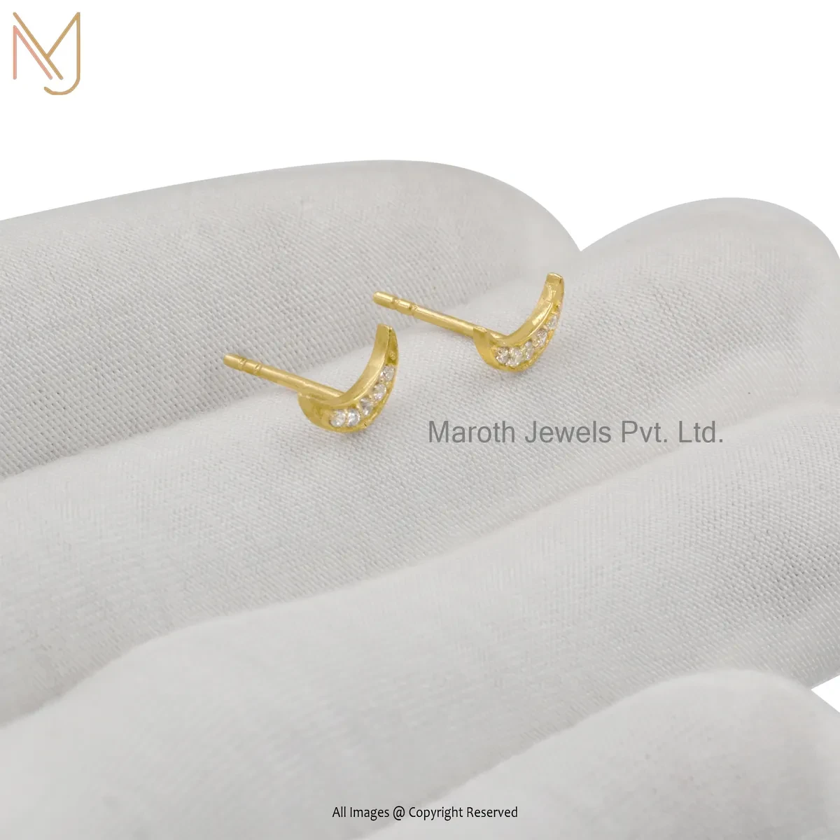 925 Silver Yellow Gold Plated Pave Diamond Crescent Moon Stud Earring Custom Jewelry