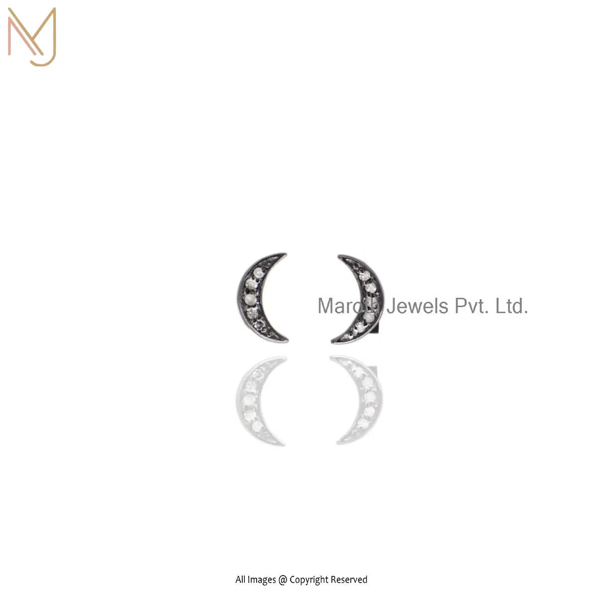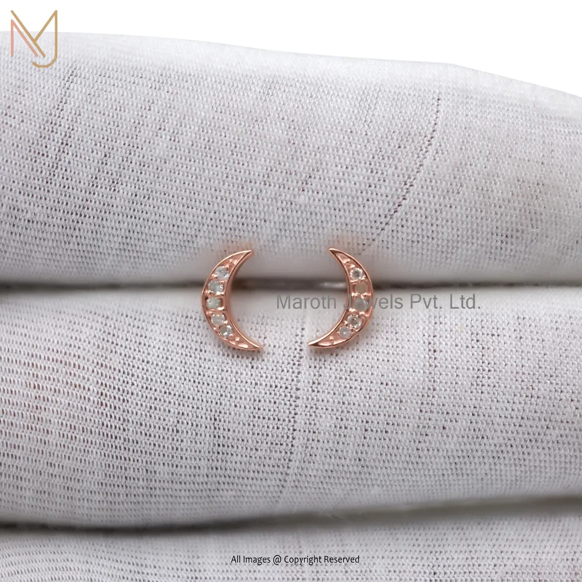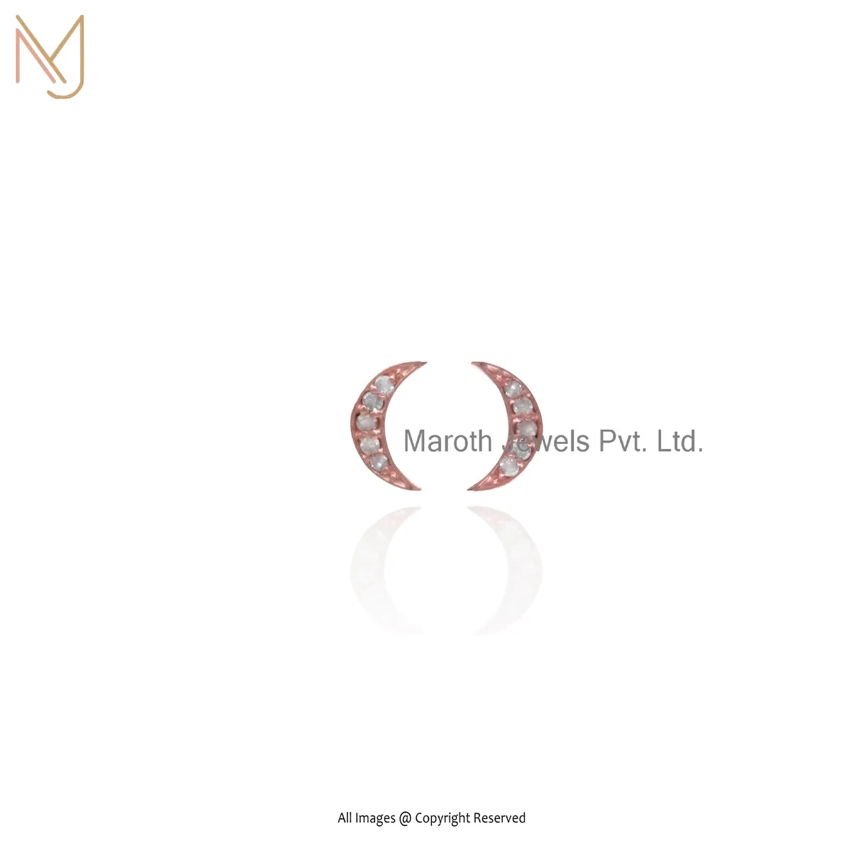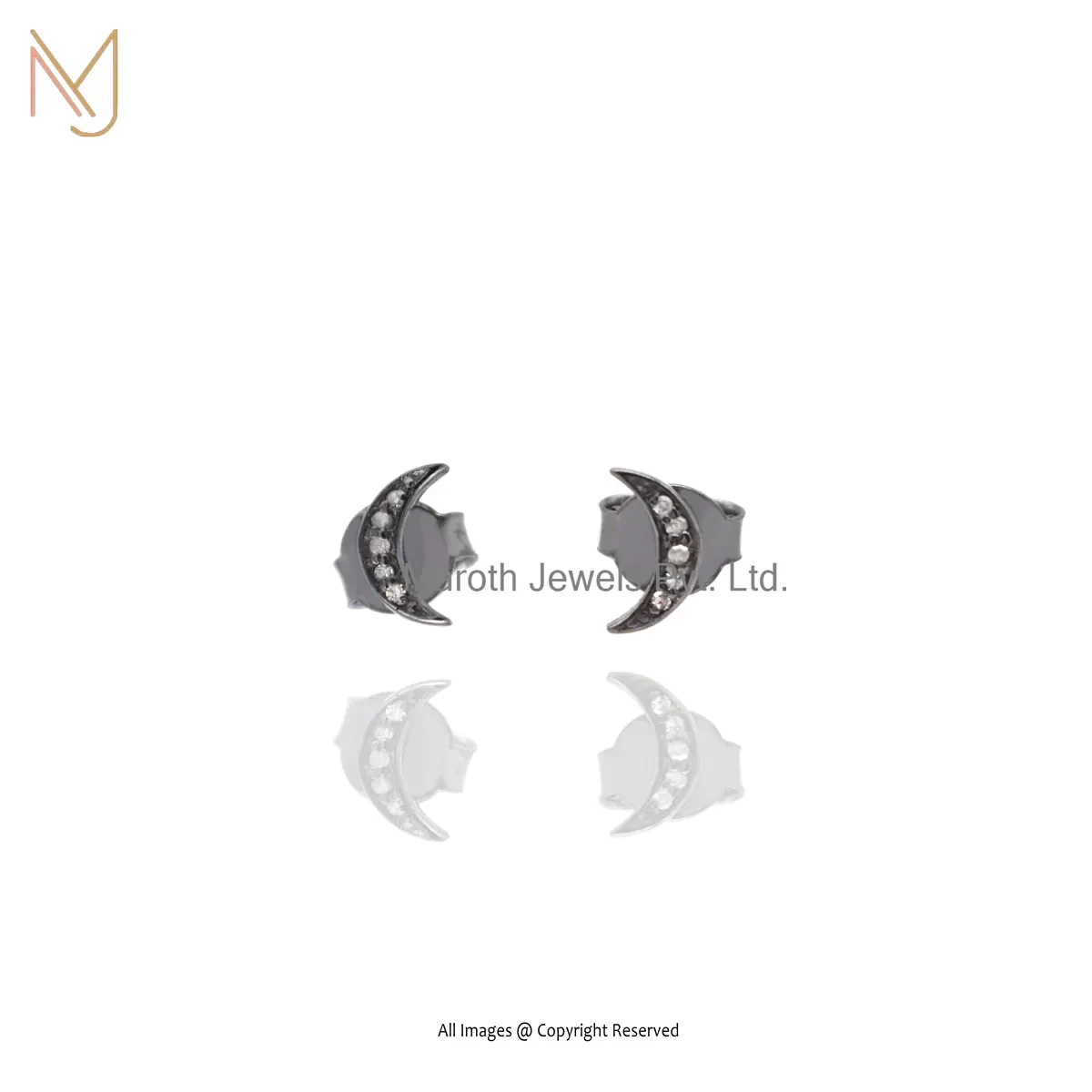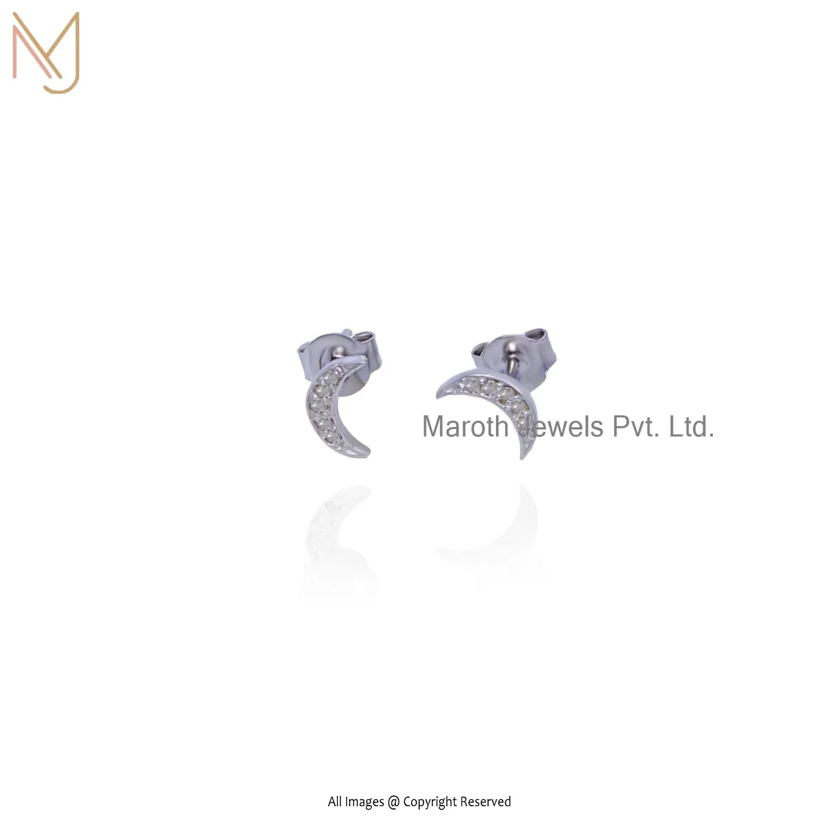 925 Silver Yellow Gold Plated Pave Diamond Crescent Moon Stud Earring Custom Jewelry