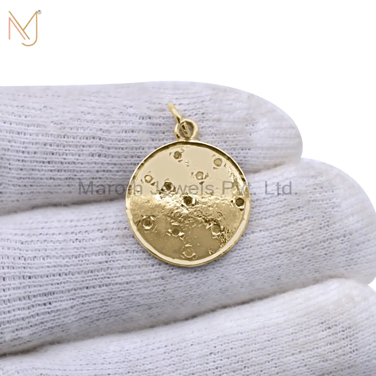 925 Silver Yellow Gold Plated Pave Diamond Disc Pendant Jewelry Manufacturer