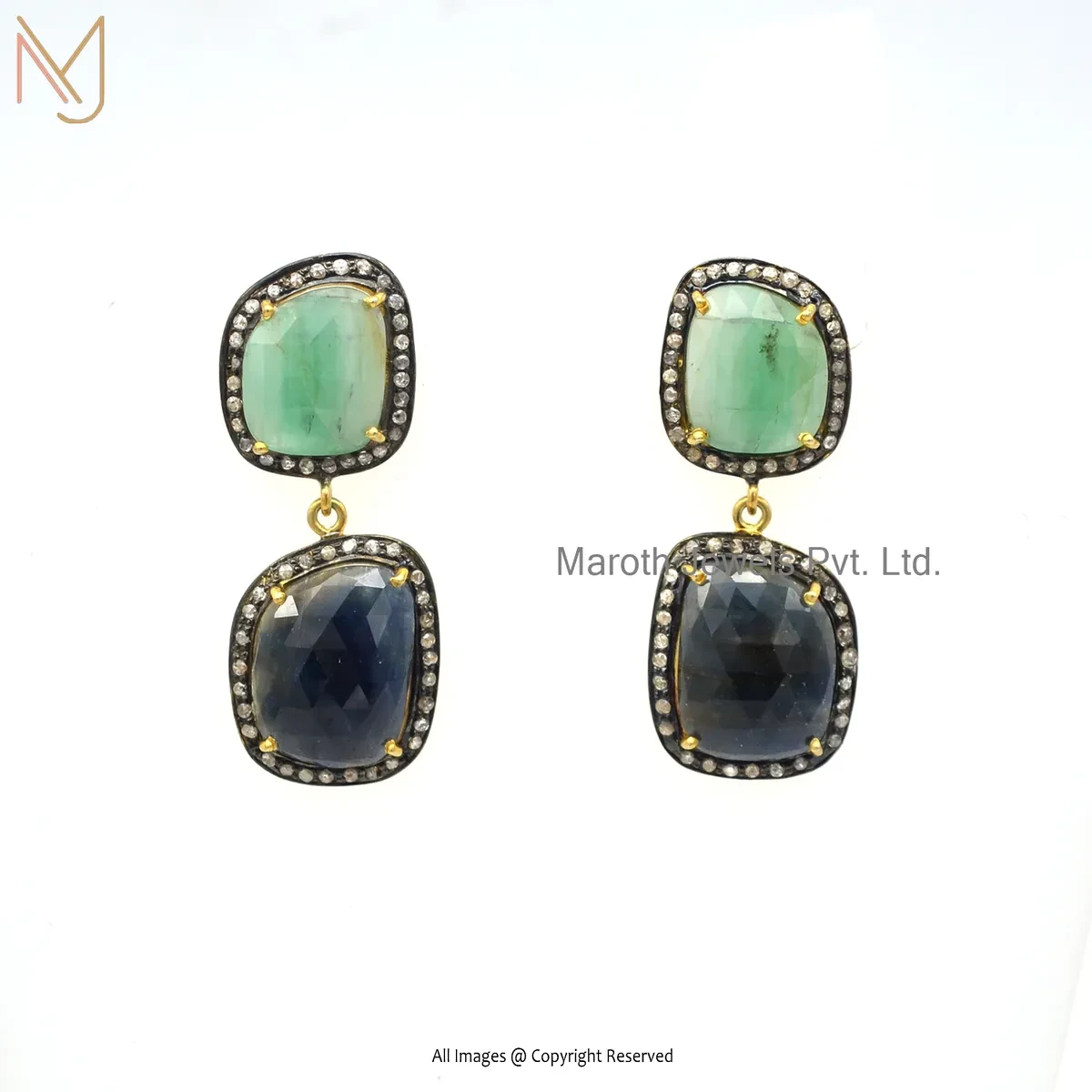 925 Silver Yellow Gold Plated Pave Diamond , Emerald , Blue Sapphire Gemstone Drop Earring USA