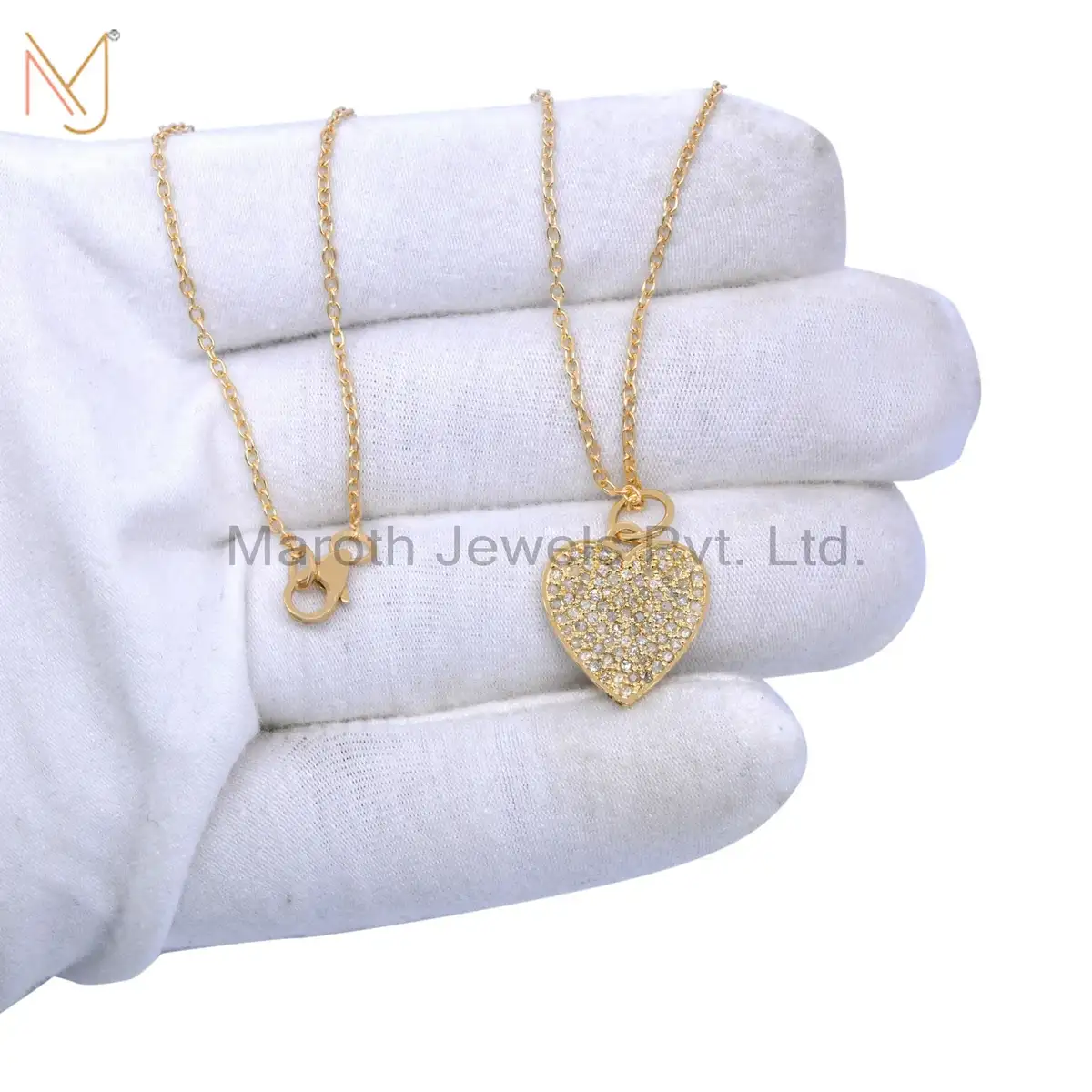 925 Silver Yellow Gold Plated Diamond Heart Pendant Jewelry Supplier