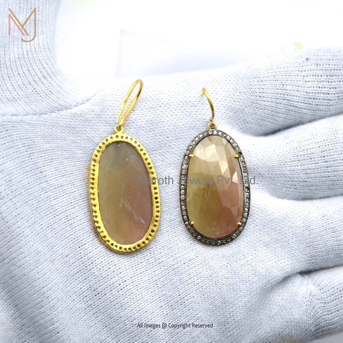 925 Silver Yellow Gold Plated Pave Diamond Yellow Sapphire Gemstone Drop Earring Jewelry Supplier