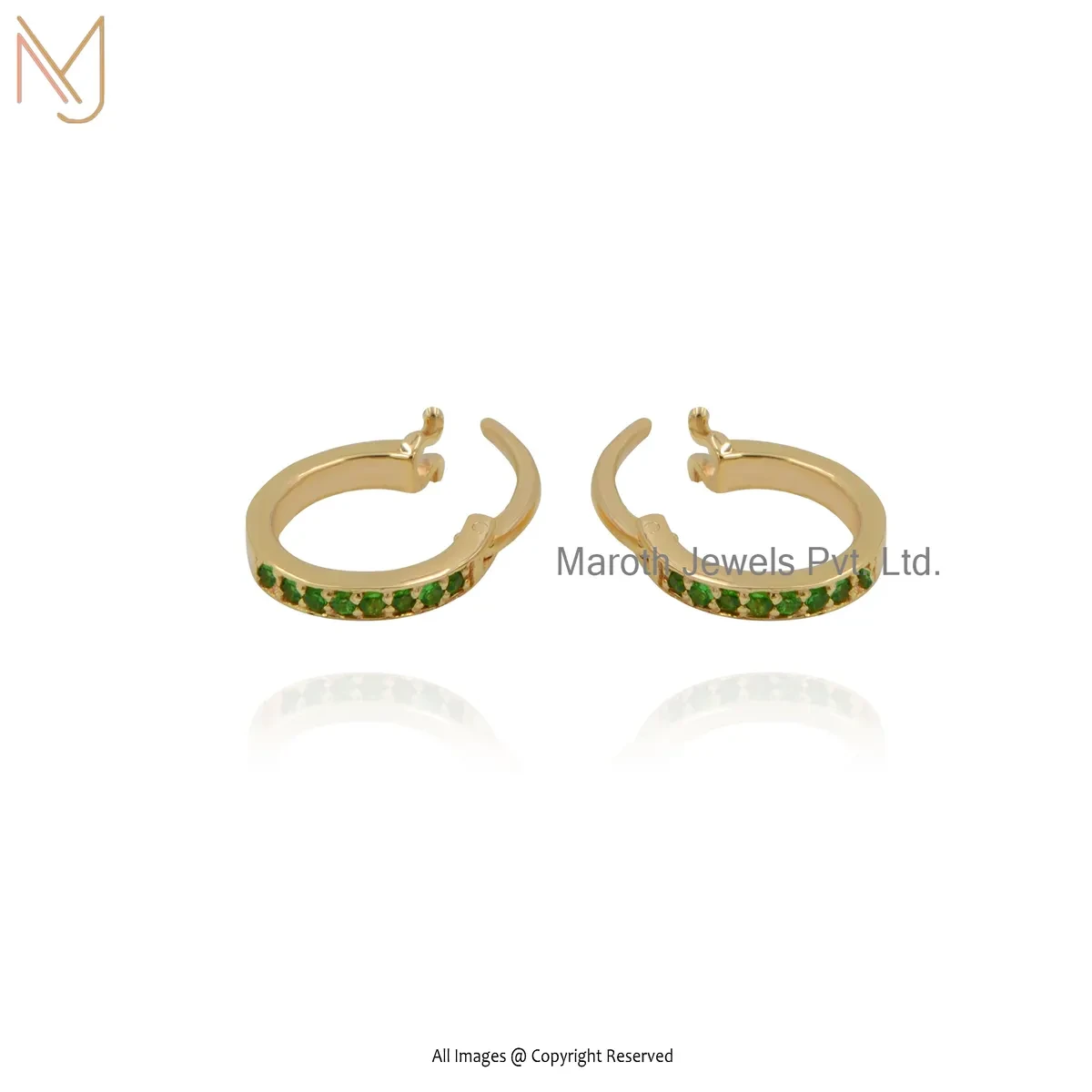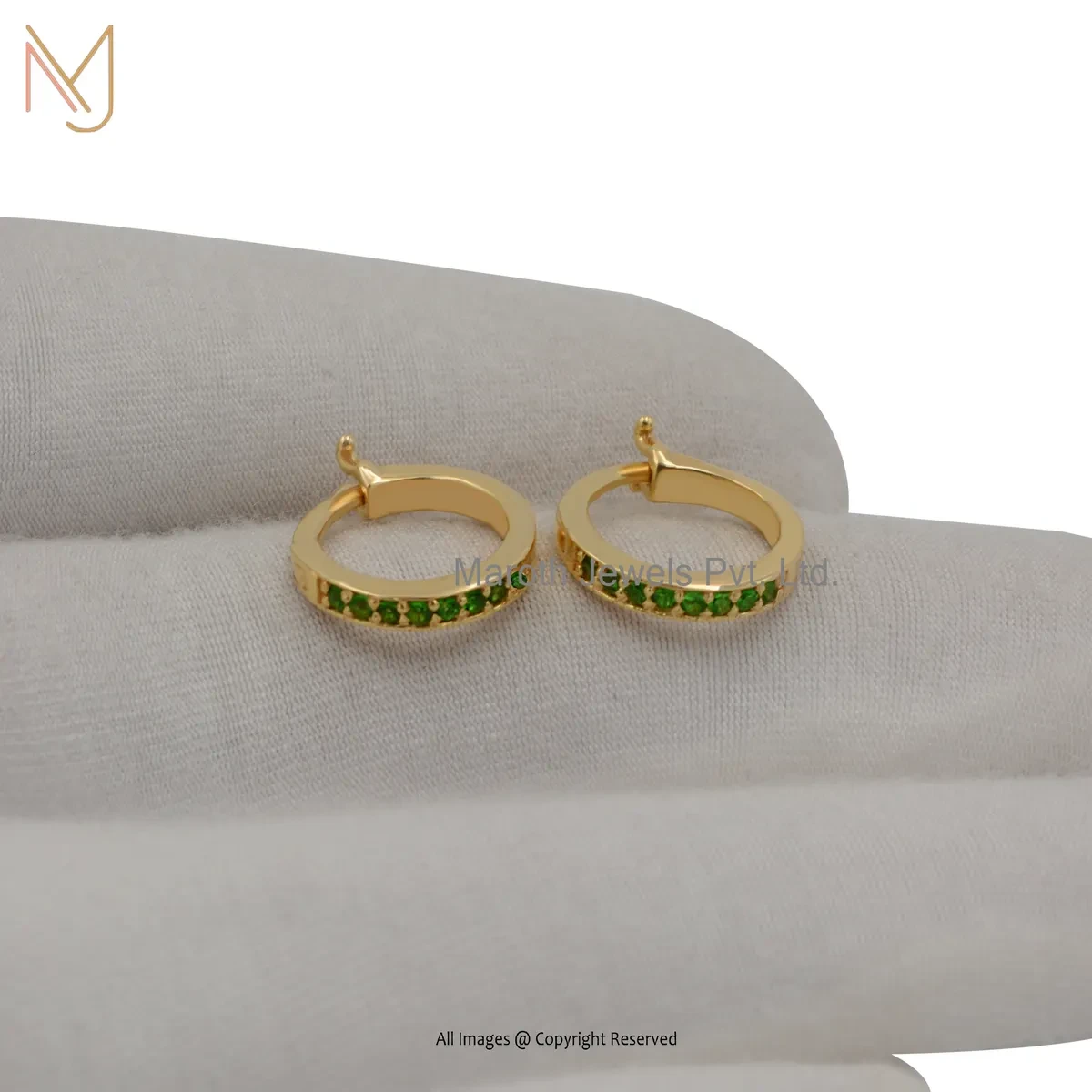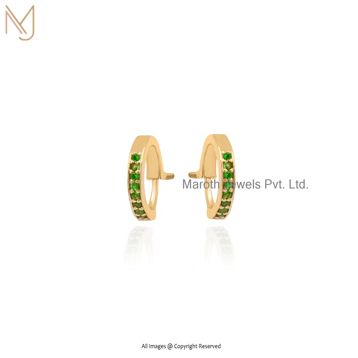 925 Silver Yellow Gold Plated Pave Tsavorite Gemstone Huggies Hoop Earring Custom Jewelry
