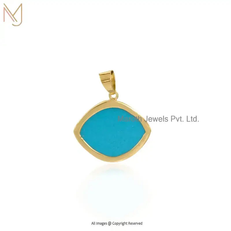 925 Silver Yellow Gold Plated Pink Cubic Zircon & Firoza Turquoise Evil Eye Gemstone Pendant Manufacturer