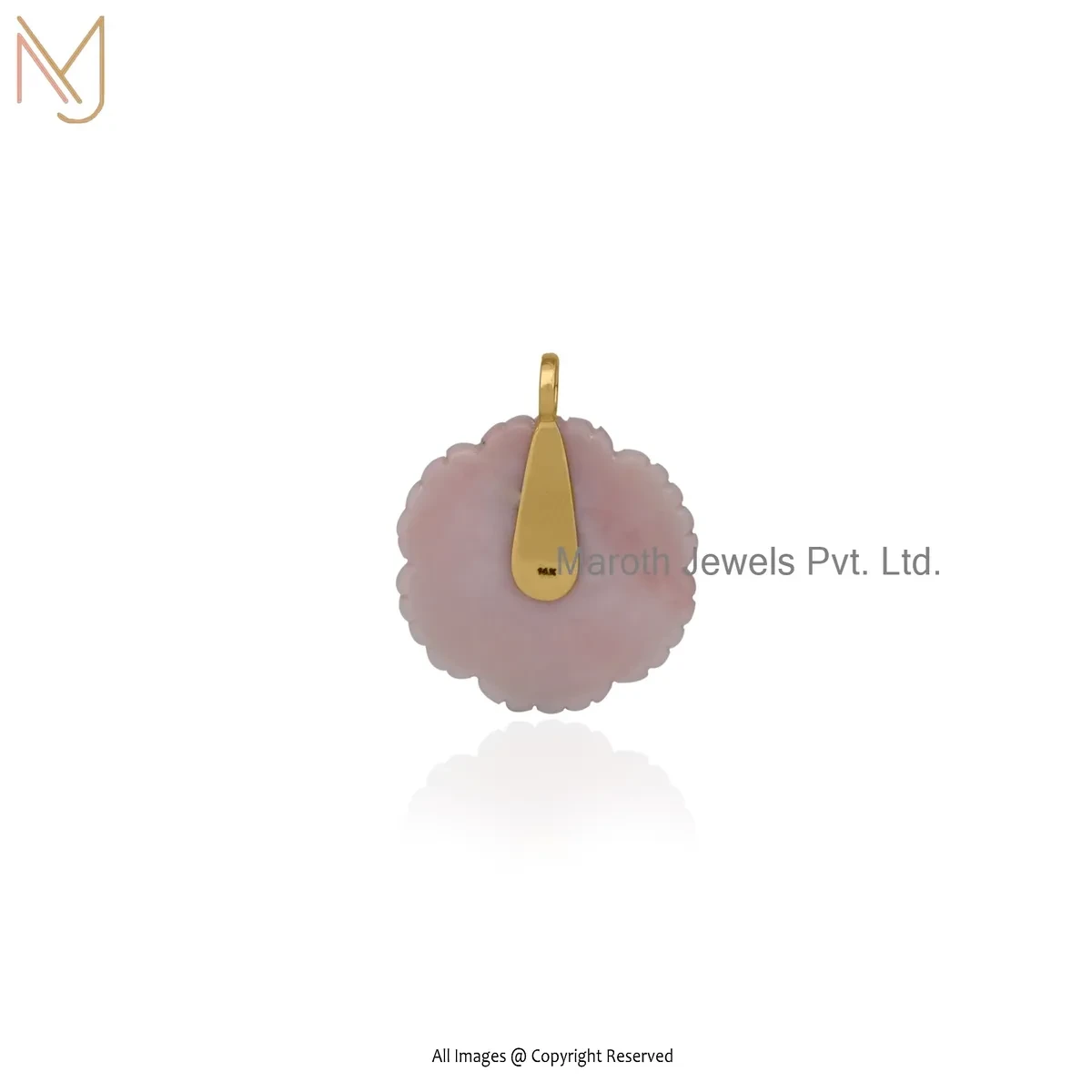 925 Silver Yellow Gold Plated Pink Opal & Ethiopian Opal Flower Pendant Manufacturer