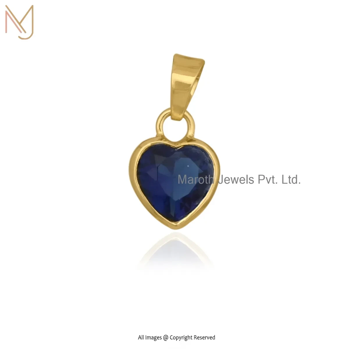 925 Silver Yellow Gold Plated Pink Sapphire Heart Gemstone Pendant Jewelry Supplier