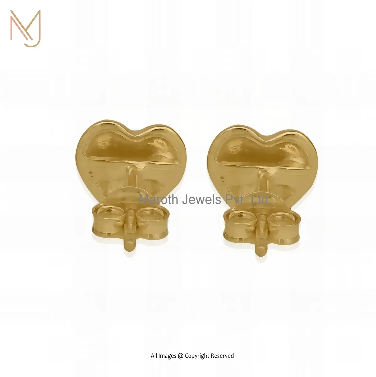 925 Silver Yellow Gold Plated Puffed Heart Earring Custom Jewelry