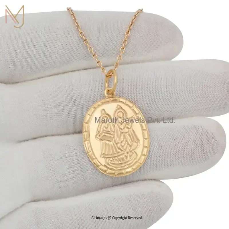 925 Silver Yellow Gold Plated Religious Hindu Deity Lovely Couple Radha Krishna Bhima Pendant USA