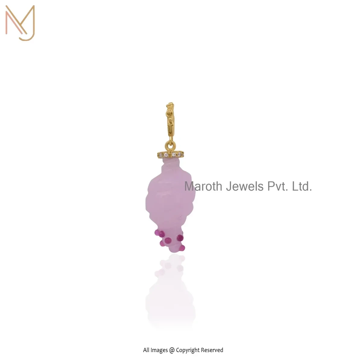 925 Silver Yellow Gold Plated Ruby Cubic Zircon & Rose Quartz Gemstone Conch Shell Pendant USA