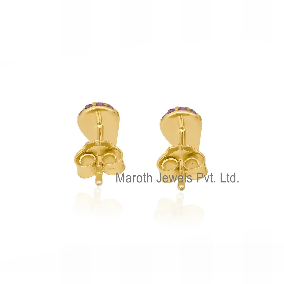 925 Silver Yellow Gold Plated Ruby Ice Cream Cone Stud Earring Manufacturer
