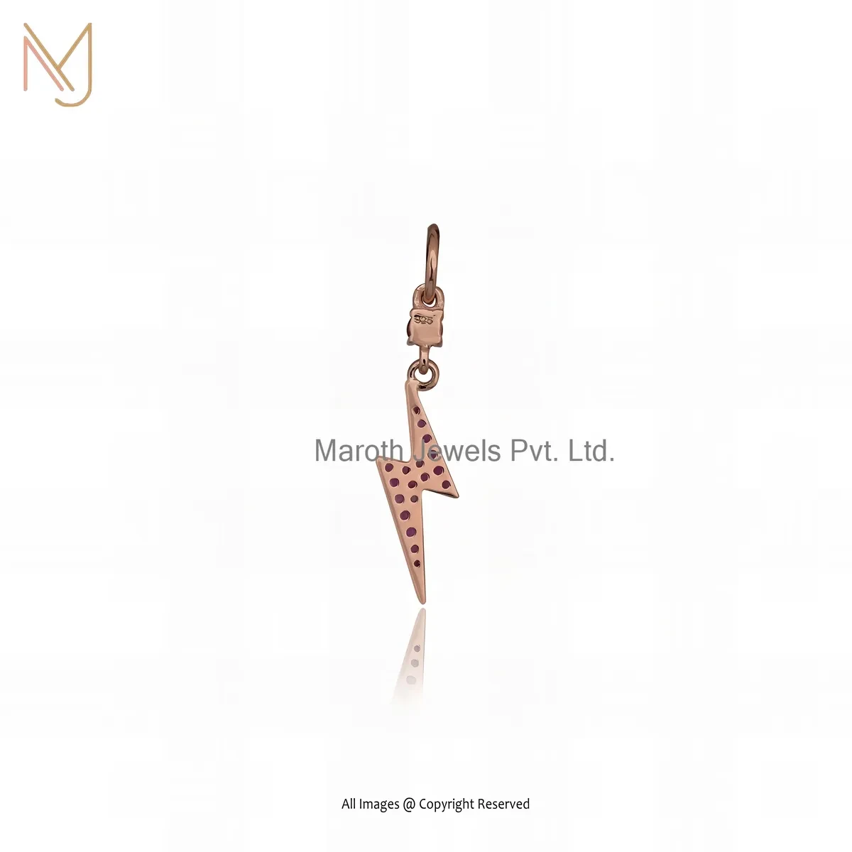925 Silver Yellow Gold Plated Ruby Lightning Bolt Pendant Custom Jewelry