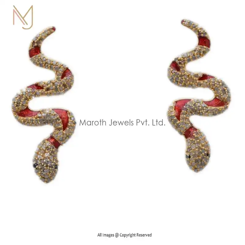 925 Silver Yellow Gold Plated Snake Enamel Diamond Earrings Handmade Jewelry Manufacturer
