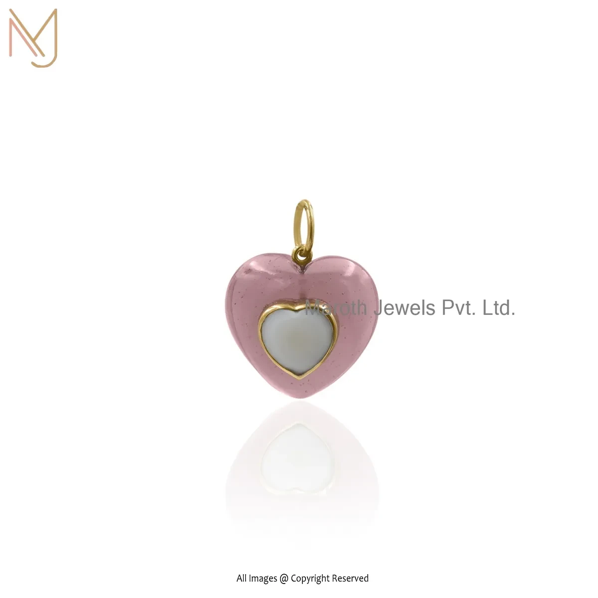 925 Silver Yellow Gold Plated Tourmaline & White Agate Gemstone Heart Pendant Jewelry Supplier