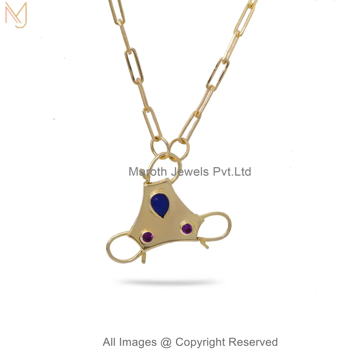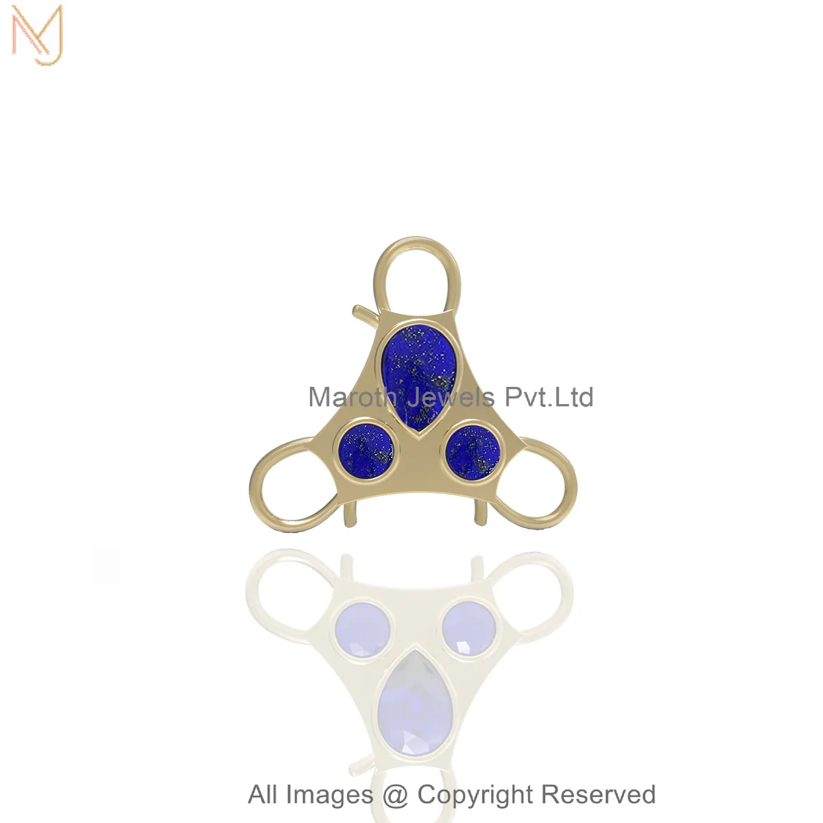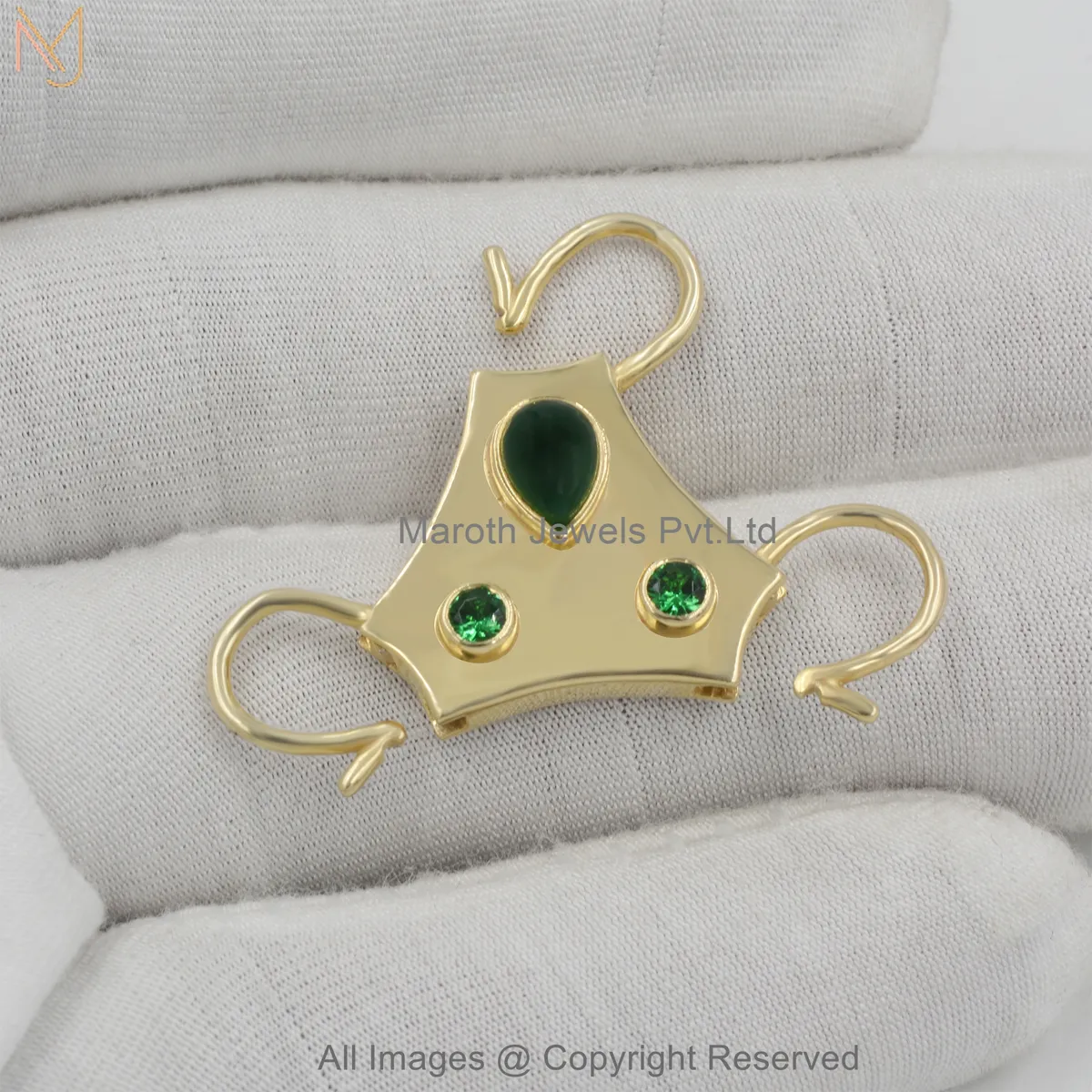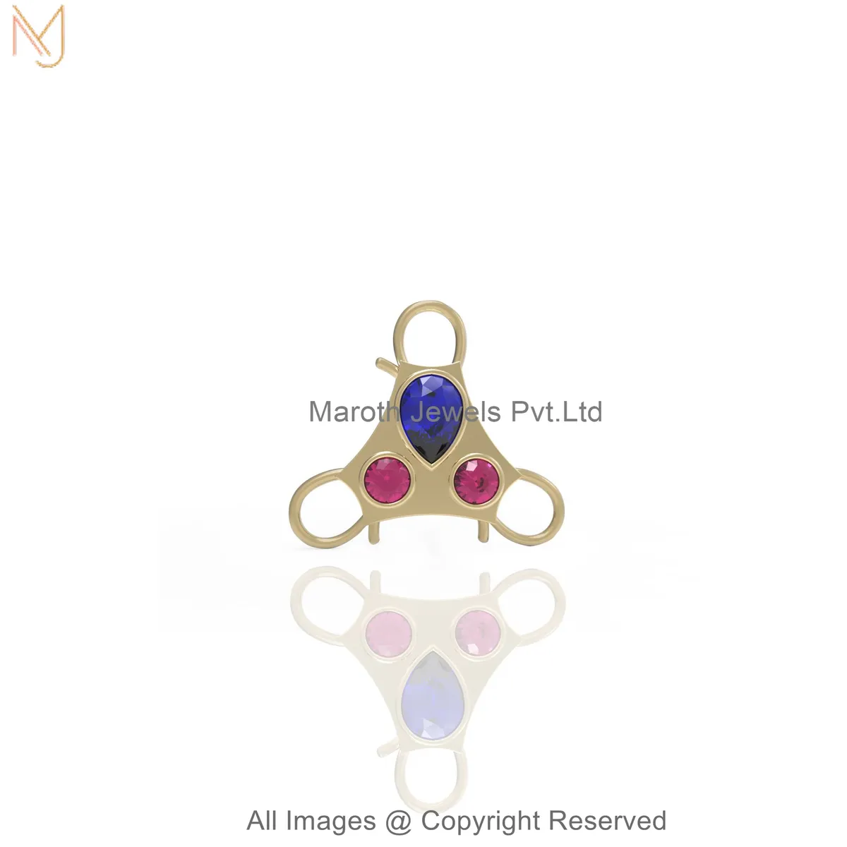 925 Silver Yellow Gold Plated Diamond Gemstone Tri-Stone Charm Holder Jewelry Manufacturer