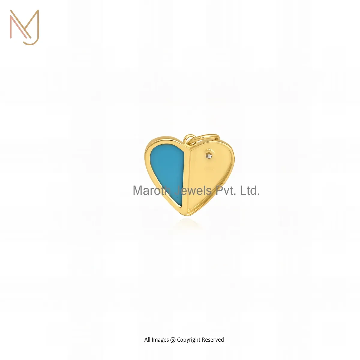 925 Silver Yellow Gold Plated Turqouise And Moissanite Heart Pendant Manufacturer