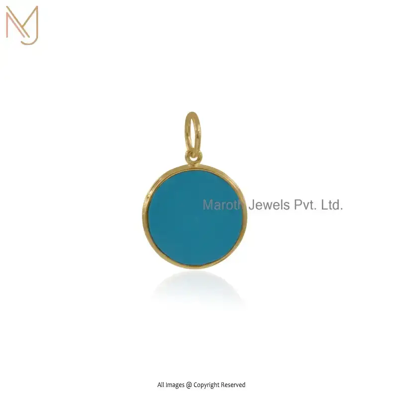 925 Silver Yellow Gold Plated Turquoise Cubic Zircon Gemstone Compass Pendant Manufacturer