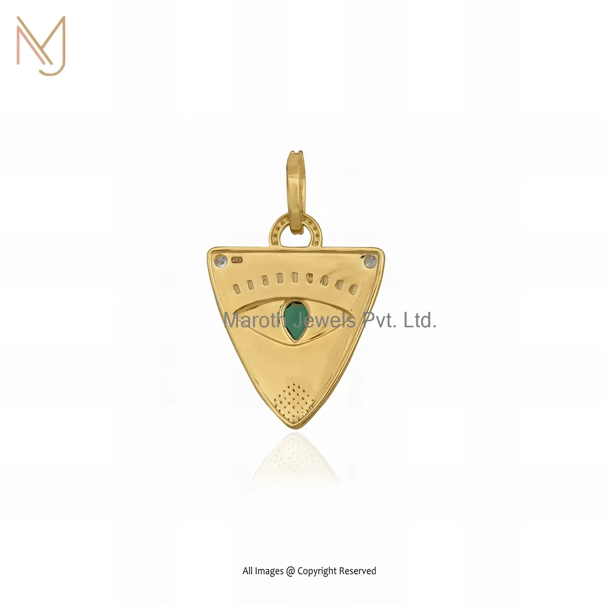 925 Silver Yellow Gold Plated Turquoise & Emerald Cubic Zircon Evil Eye Pendant USA