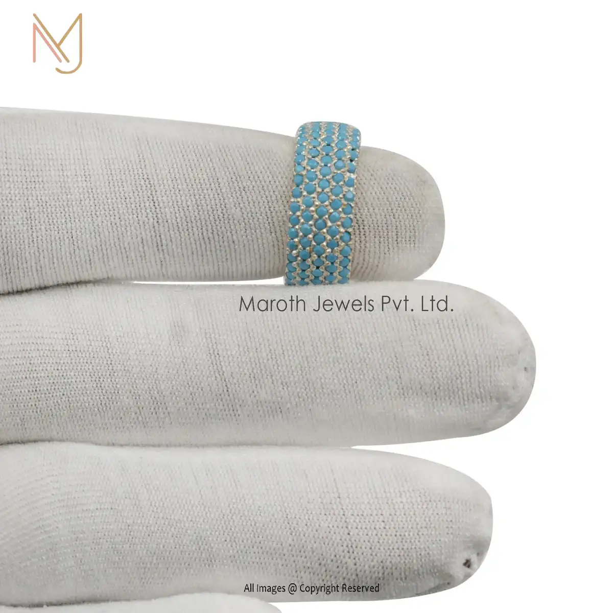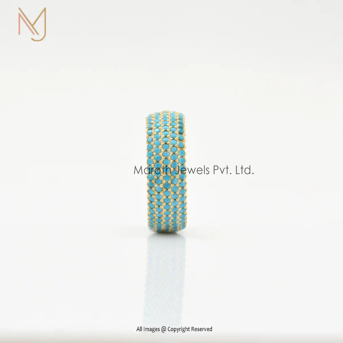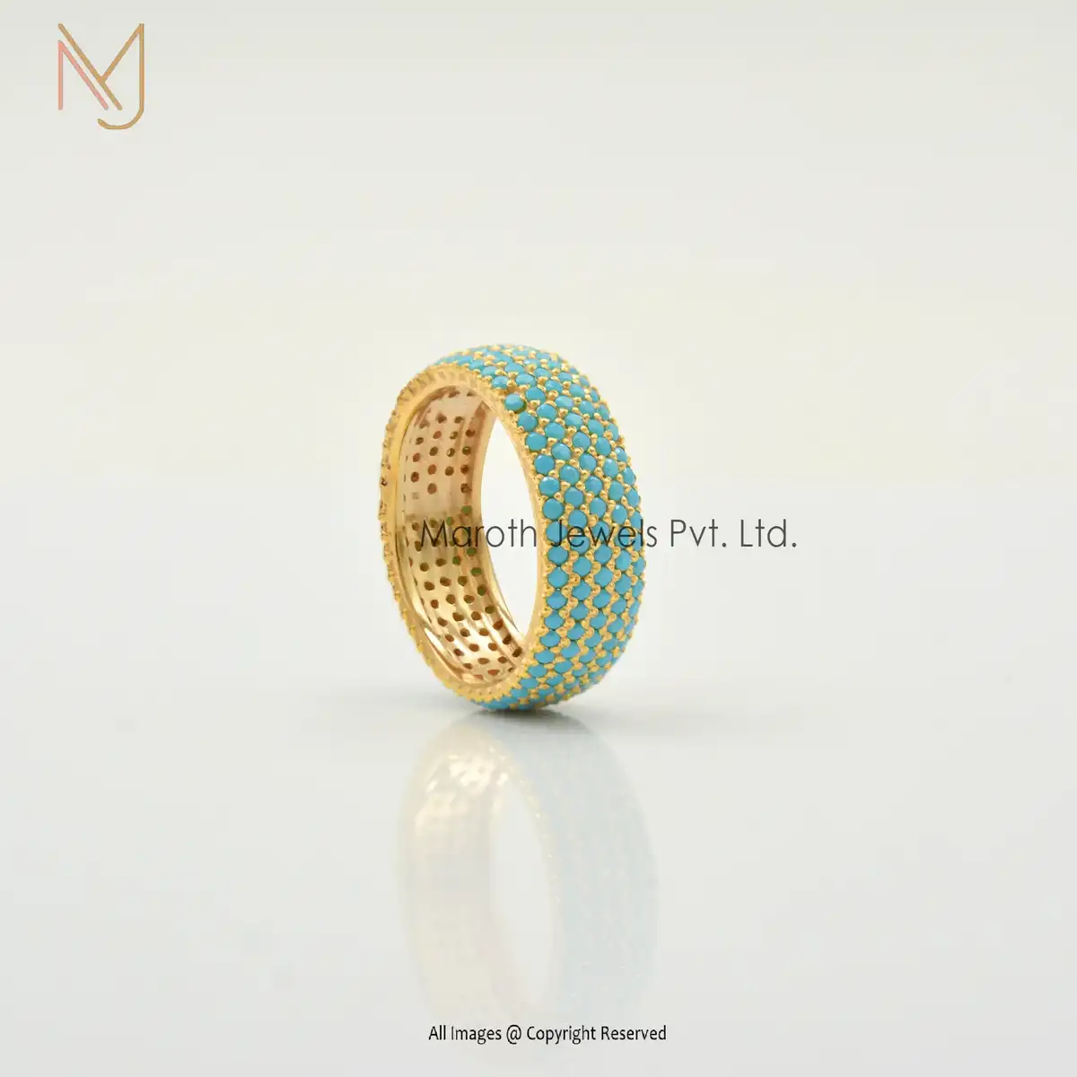 925 Silver Yellow Gold Plated Turquoise Band Ring Jewelry Supplier