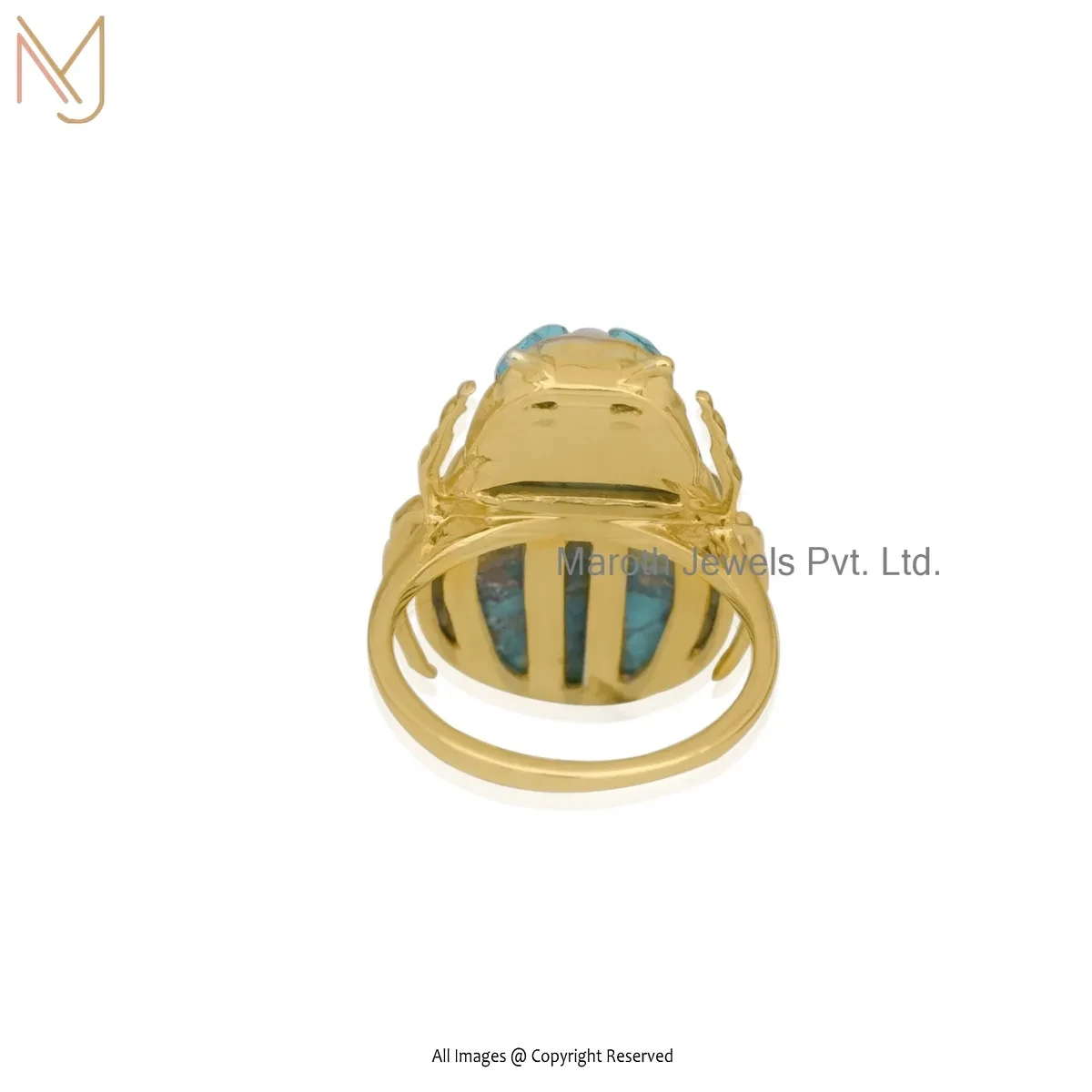 925 Silver Yellow Gold Plated Turquoise Gemstone Scarab Ring Jewelry Supplier