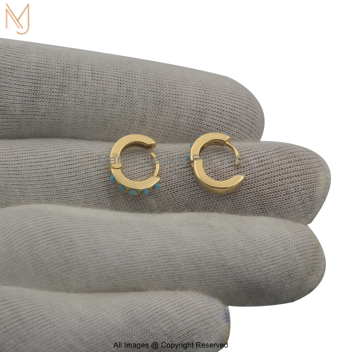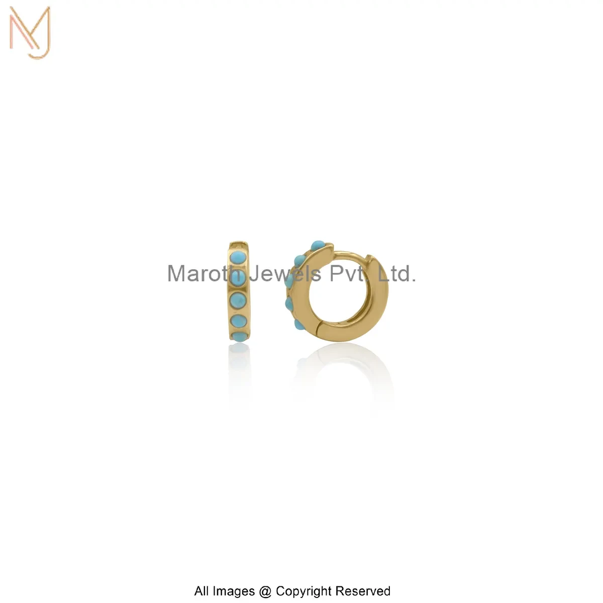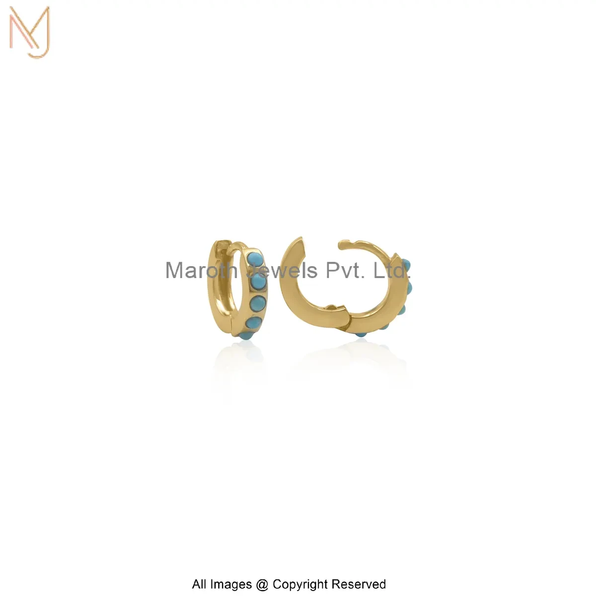 925 Silver Yellow Gold Plated Turquoise Huggies Earring Custom Jewelry