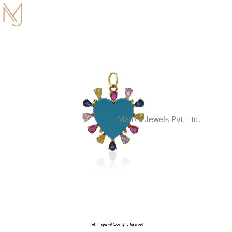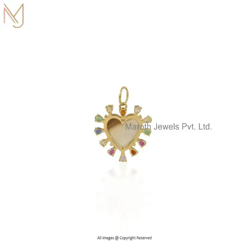 925 Silver Yellow Gold Plated White Agate And Blue Sapphire Heart Gemstone Pendant USA