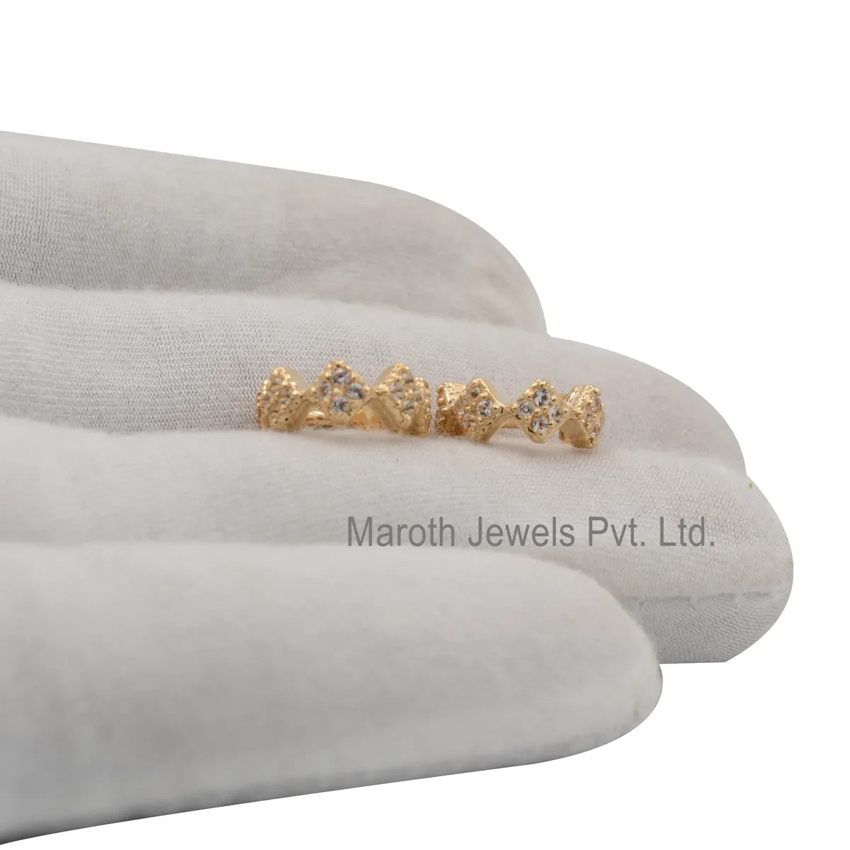 925 Silver Yellow Gold Plated White Topaz Huggies Earring Jewelry Supplier