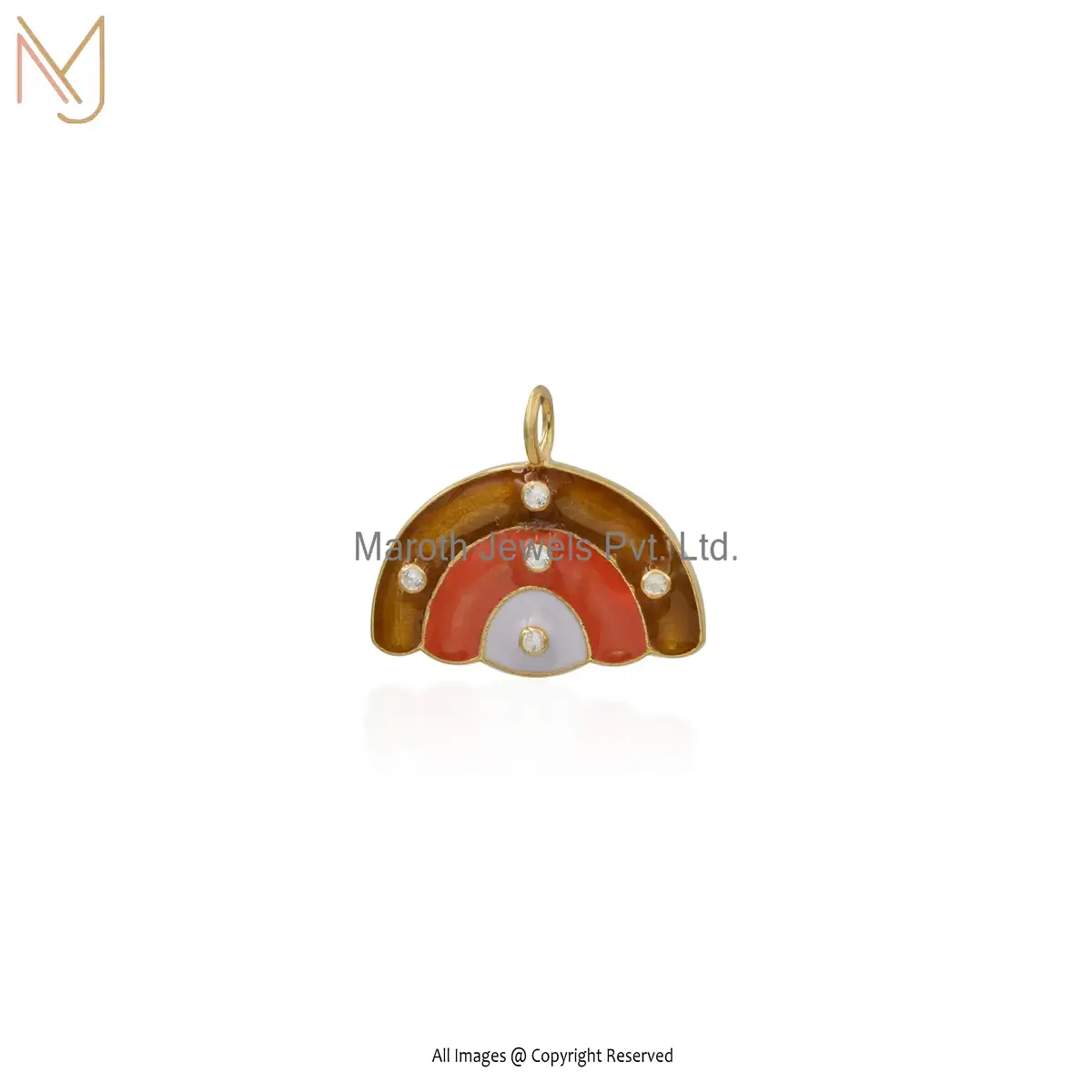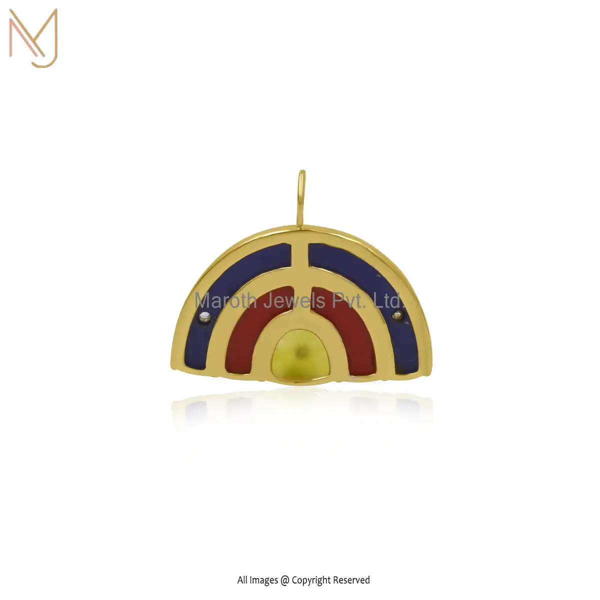 925 Silver Yellow Gold Plated White Topaz Multi Enamel Pendant Custom Jewelry