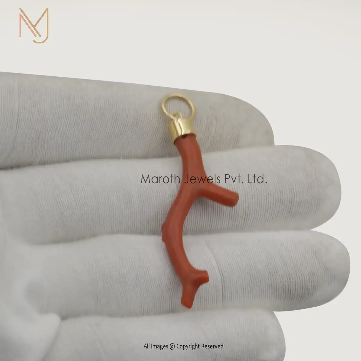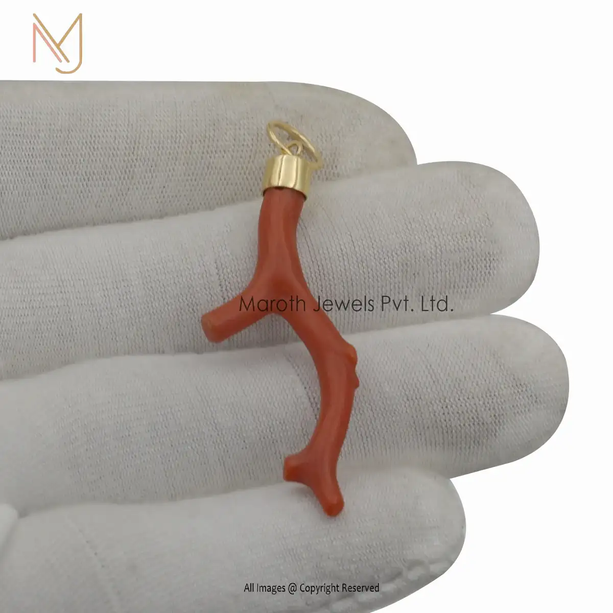 925 Silver Yellow Gold Red Coral Branch Pendant Jewelry Manufacturer