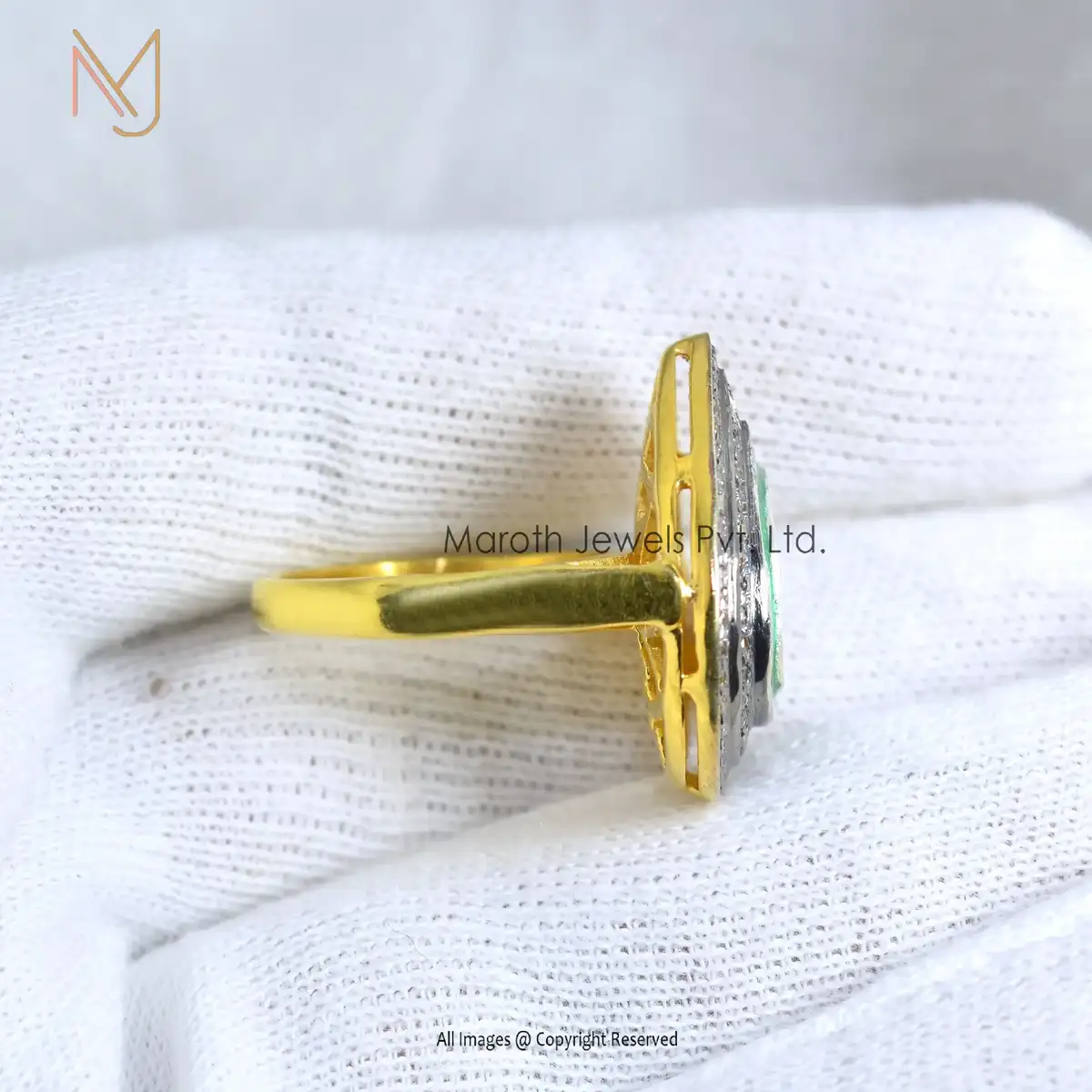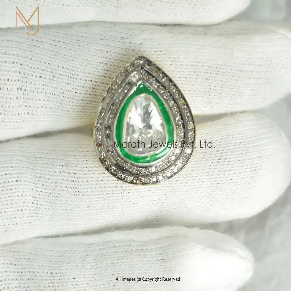 925 Silver Yellow Gold Rhodium Plated Pave Diamond & Rose Cut Diamond Enamel Ring Manufacturer