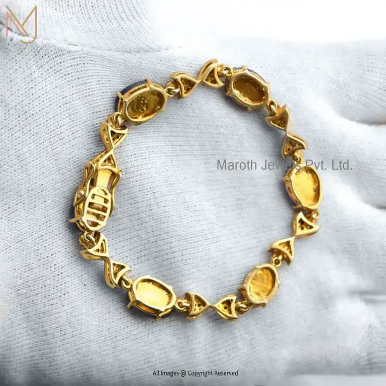 925 Silver Yellow Gold Rhodium Plated Pave Diamond Tanzanite Gemstone Bracelet Jewelry Supplier