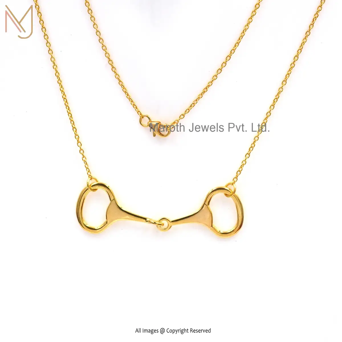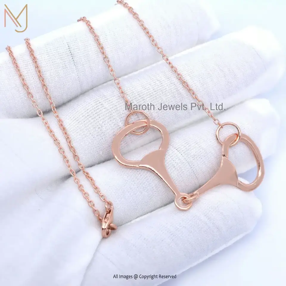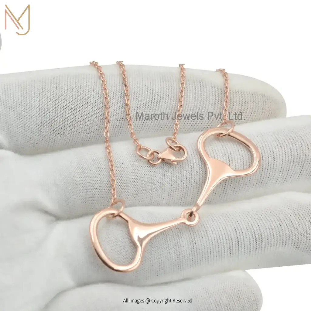 925 Silver Yellow Gold Snaffle Bit Horse Shoes Necklace Jewelry Manufacturer
