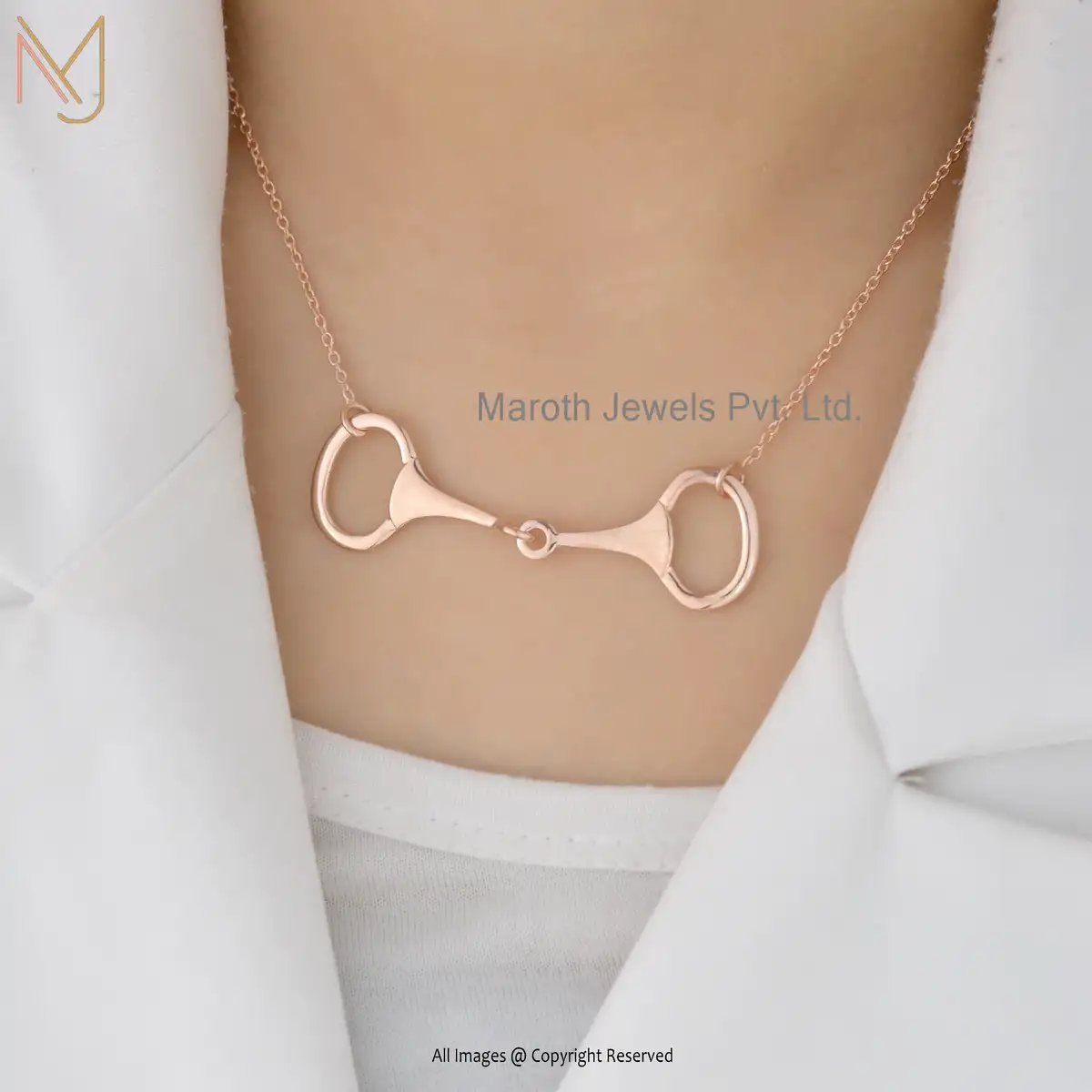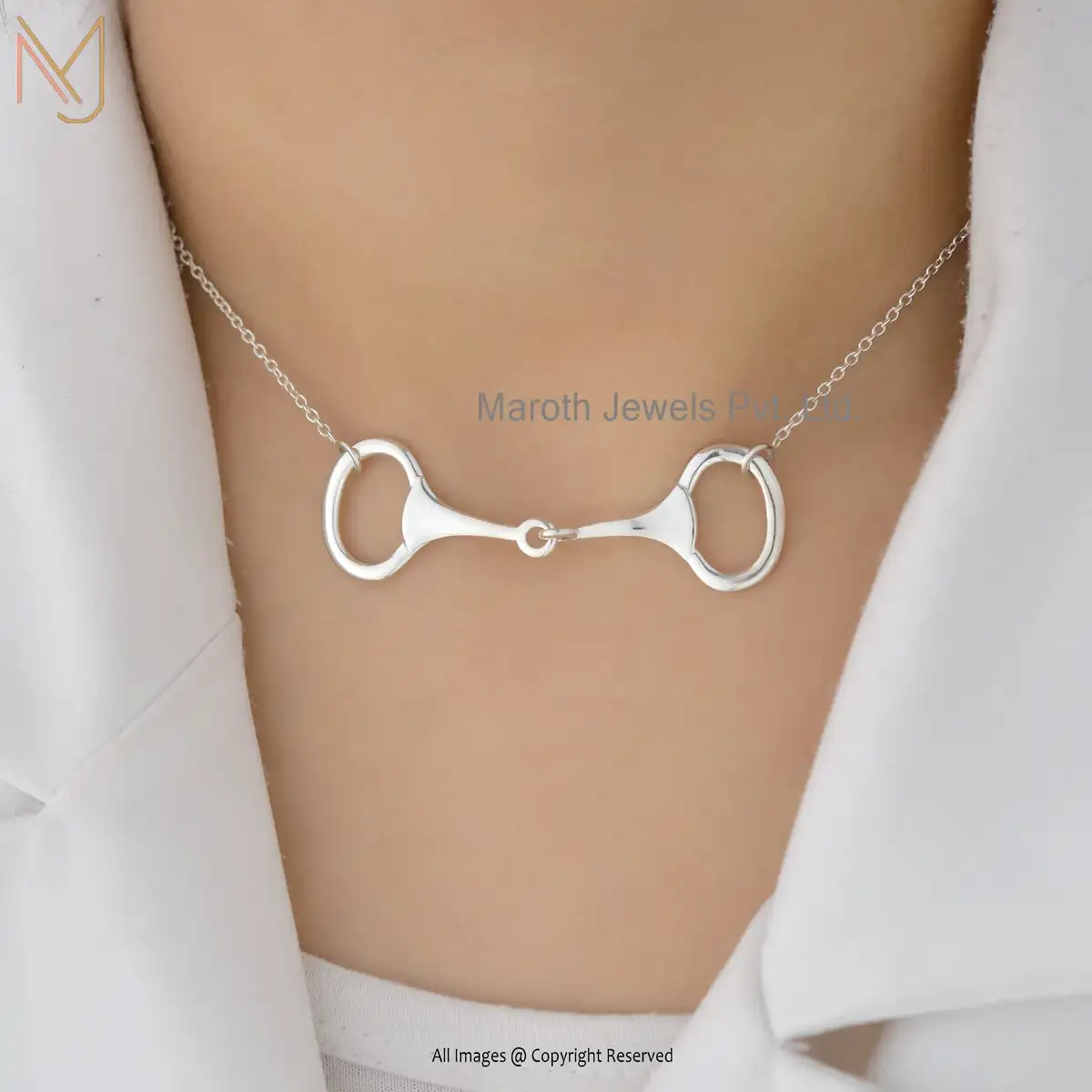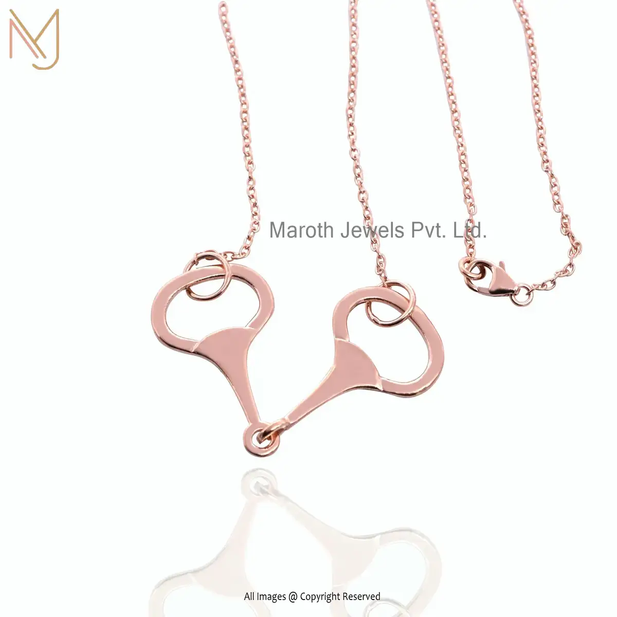 925 Silver Yellow Gold Snaffle Bit Horse Shoes Necklace Jewelry Manufacturer