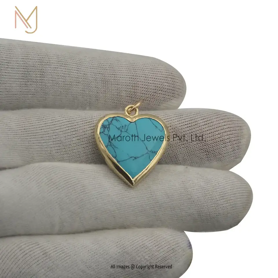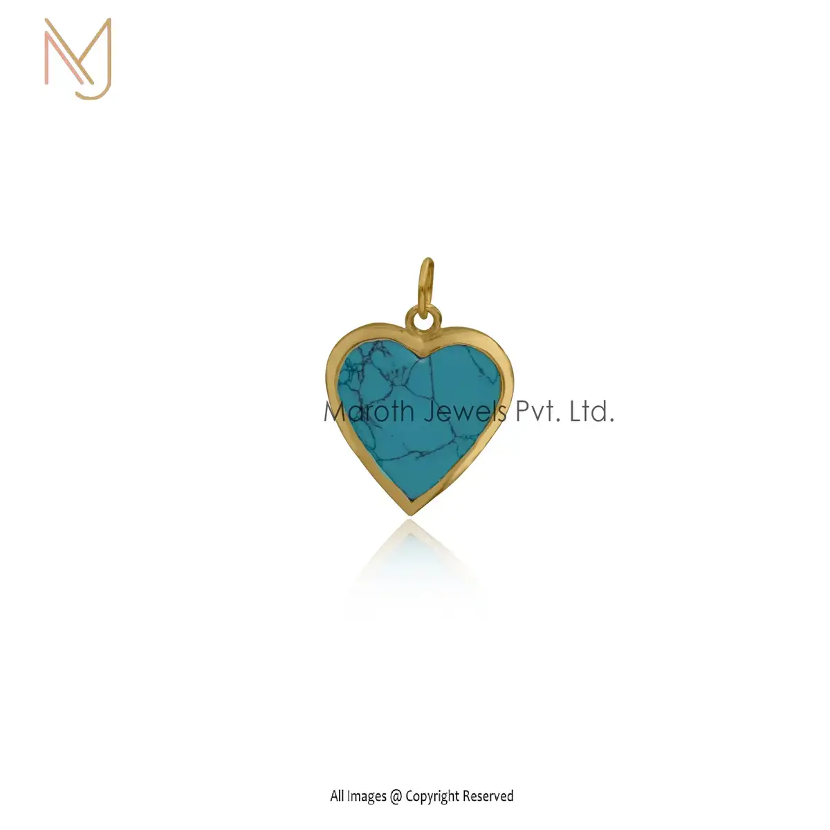 925 Silver Yellow Gold Turquoise Heart Pendant Custom Jewelry