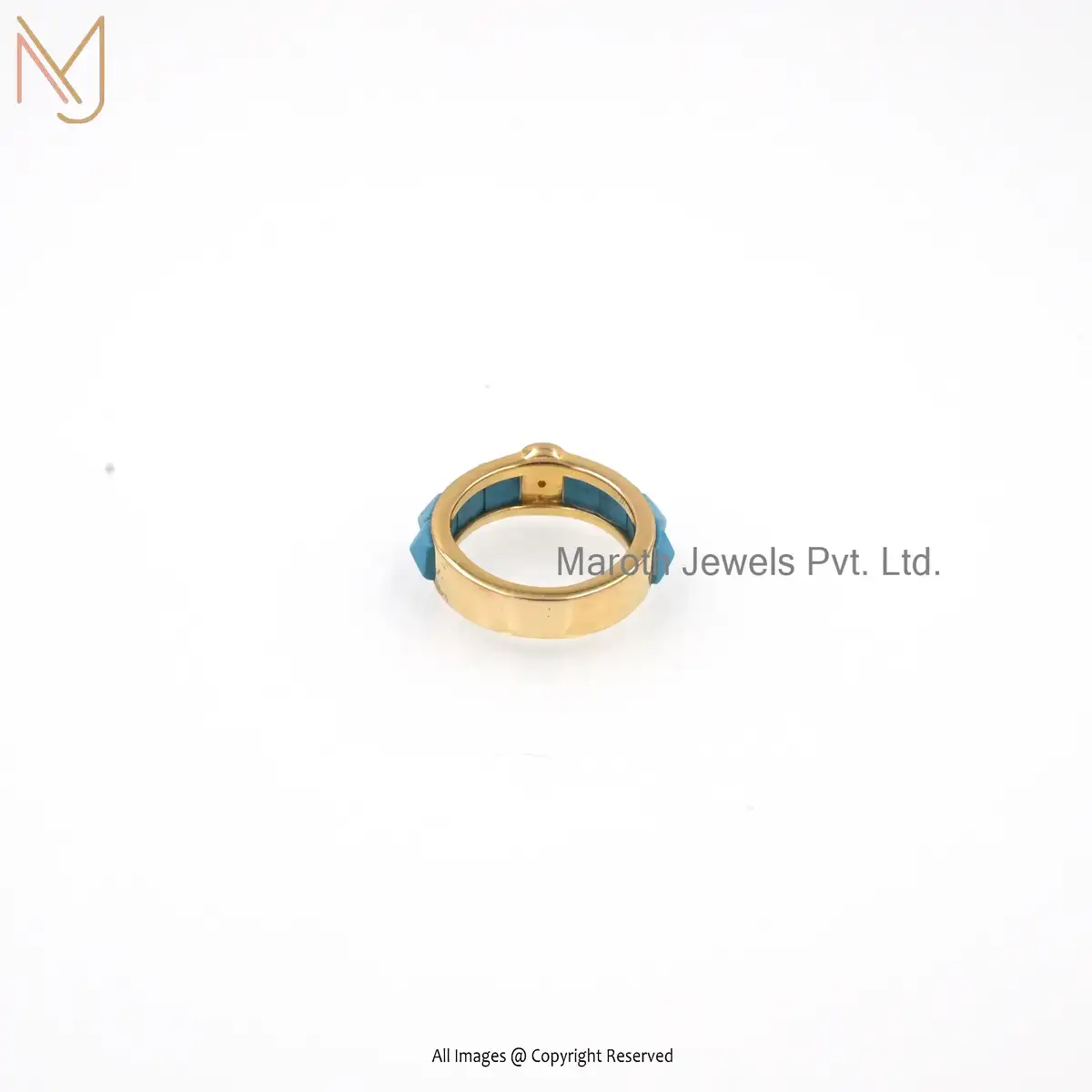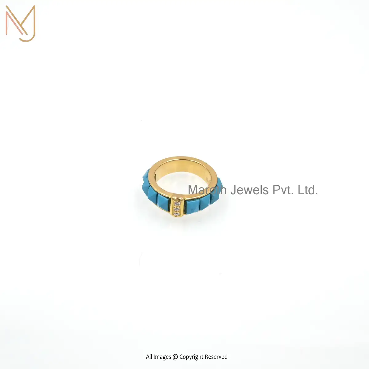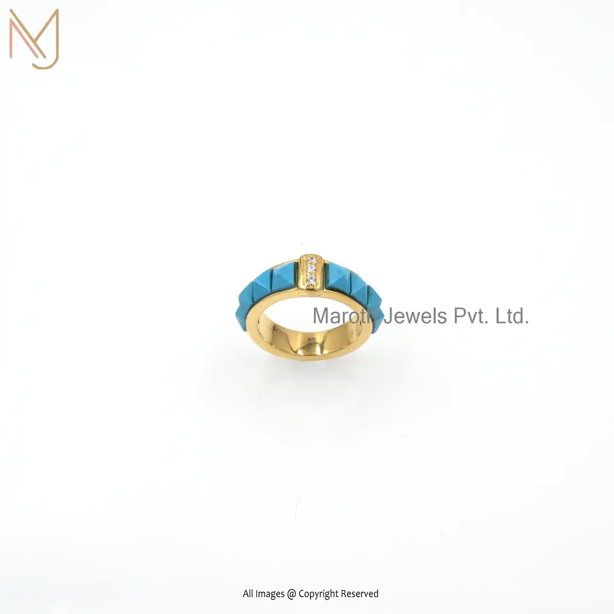 925 Silver Yellow Gold Turquoise & White CZ Gemstone Ring Manufacturer