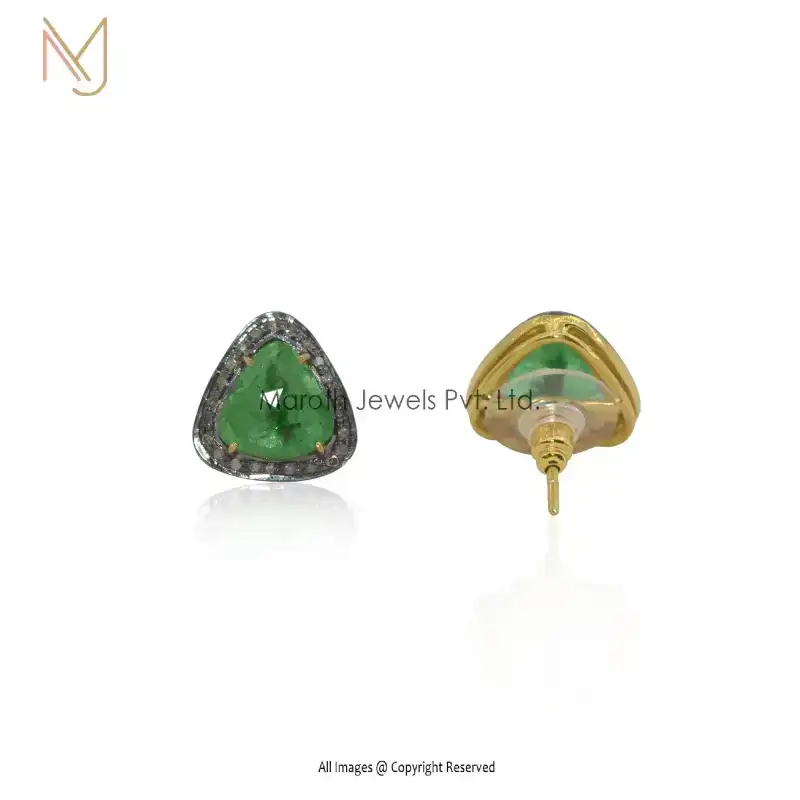 925 Silver Yellow Rhodium Plated Pave Diamond Emerald Gemstone Stud Earring Jewelry Supplier