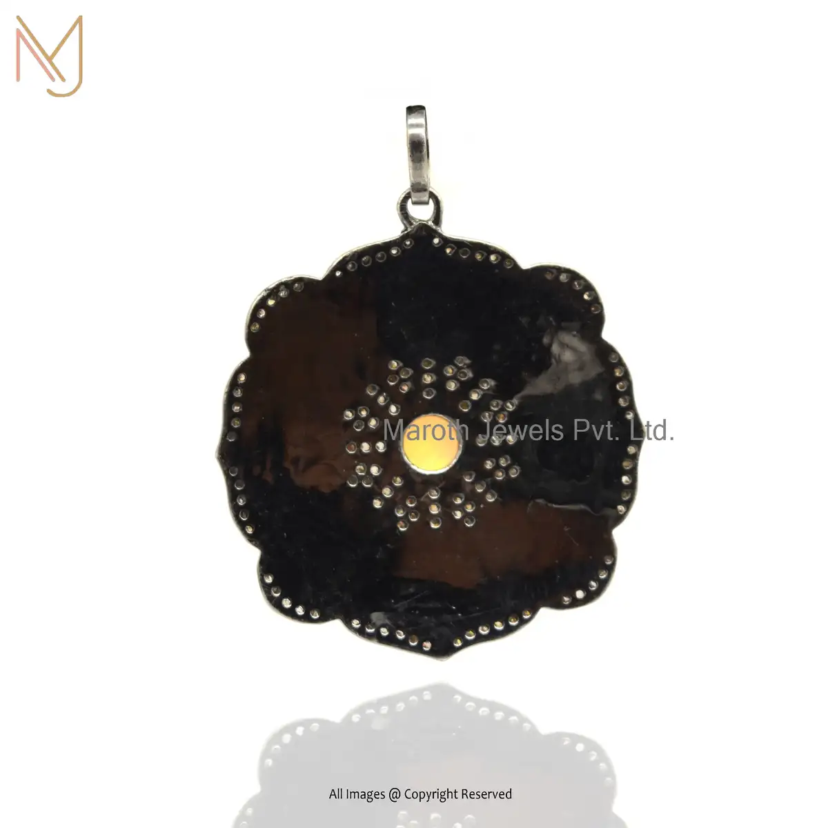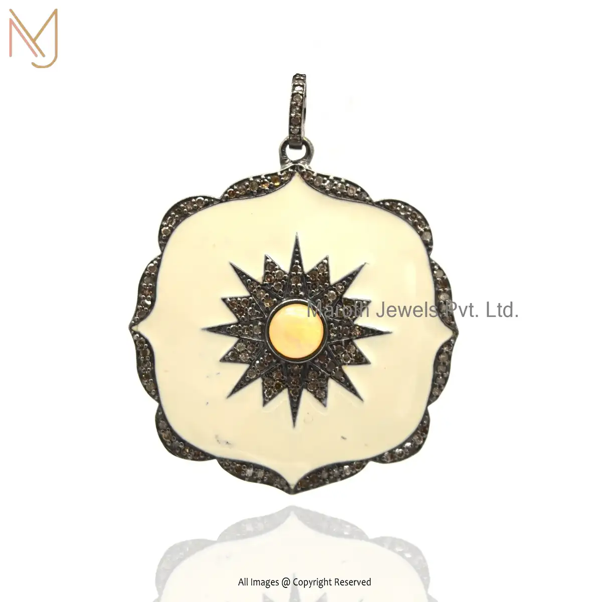 925 Sterling Silver Black Rhodium Plated Pave Diamond Opal & White Enamel Gemstone Pendant Jewelry Supplier