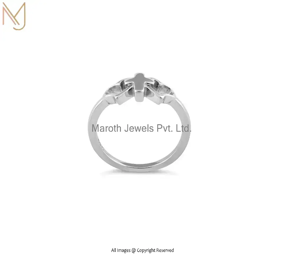 925 Sterling Silver Cross with 2 Hearts Ring Manufacturer