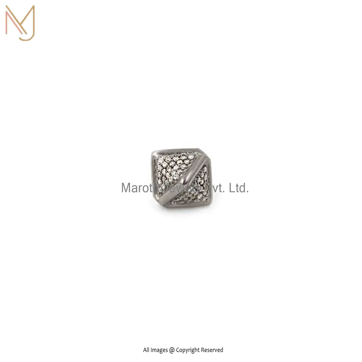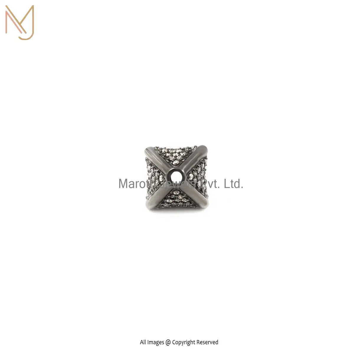 925 Silver Gray Rhodium Plated Pave Diamond Beads Finding Jewelry Manufacturer